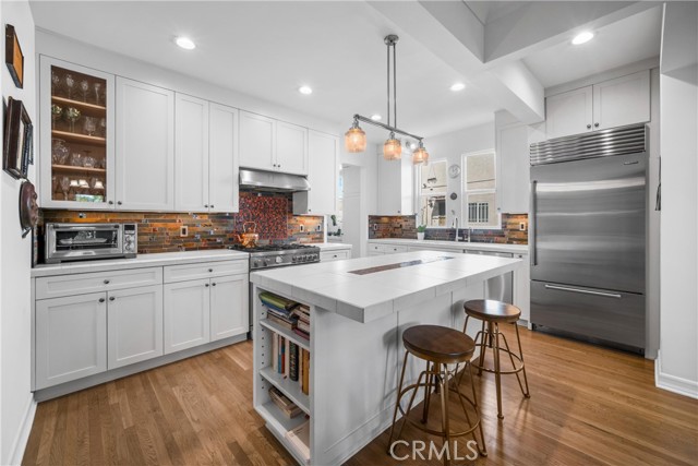 Perfectly situated in one of Los Angeles’ most desirable 1920s duplex corridors, this fully renovated and turnkey property at 1245 S. Hudson Avenue blends timeless architecture with modern luxury. Designed to live like two single-family homes, each spacious residence offers approximately 2,100+ square feet of bright, open living space with updated systems, designer finishes, and thoughtful separation for privacy and comfort. Both the upper and lower residences feature three bedrooms, two full bathrooms, formal living and dining rooms, and chef’s kitchens appointed with professional-grade stainless steel appliances, including a Bertazzoni range, Sub-Zero refrigerator, and generous prep island. Elegant bathrooms, newer HVAC, in-unit laundry, and dual backup generators further enhance the property’s turnkey appeal. Outside, manicured gardens and mature trees create an inviting sense of calm. Enjoy morning coffee from the covered porch or balcony, or host friends in the backyard oasis. The property also includes two detached two-car garages, a carport for additional parking, and an automatic gated driveway Whether you’re seeking an exceptional multi-generational living setup, an income-producing investment, or the ideal owner-occupied duplex, this rare offering in South Hancock Park delivers it all—style, flexibility, and enduring value in one impeccable package.