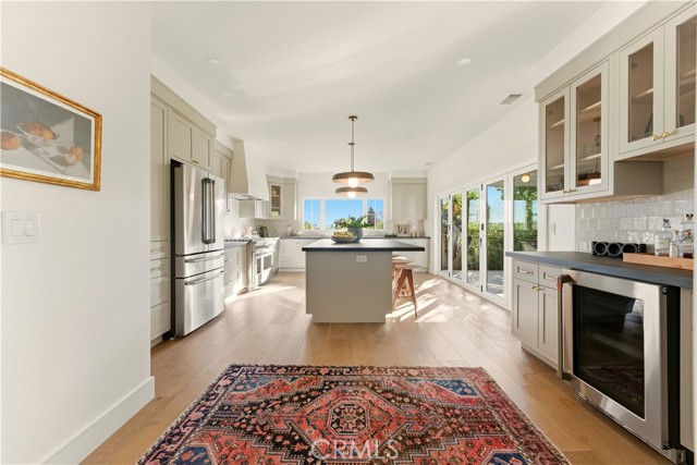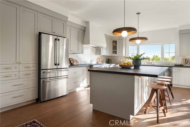 Welcome to 2201 North Hobart Blvd, a fully reimagined residence set just moments from the iconic Griffith Park Observatory—one of Los Angeles’ most historic and cinematic landmarks. Inside, the home has been meticulously rebuilt from the inside out: smooth-finish drywall, new electrical throughout, recessed lighting, wide-plank engineered hardwood floor, and solid-core shaker doors with polished nickel hardware create a refined, cohesive aesthetic at every turn. The heart of the home is a show-stopping chef’s kitchen, anchored by a 9-foot entertainment island topped with honed SapienStone porcelain. Custom inset shaker cabinetry, aged brass hardware, statement lighting, and a top-tier Café appliance suite—including a 48” dual-fuel range, built-in griddle, double ovens, wine cooler, French-door refrigerator, and smart-home connectivity, make this space equally perfect for hosting or everyday living. Spa-inspired bathrooms feature honed marble basketweave floors, custom cabinetry, designer fixtures, and in the primary suite, a dual shower, freestanding tub, and private toilet room. The primary bedroom enjoys a picture-window view of Los Angeles, private deck access, custom display shelving, and an oversized walk-in closet ready for personalization. Living and dining areas are warm and inviting, centered around the original stone fireplace, thoughtfully enhanced with backlighting. A built-in study hallway, abundant storage, and a beautifully finished garage with a custom wood-and-glass door add both function and style. Outside, the home’s curb appeal shines with new paint, hand-carved mahogany double doors, upgraded windows and expansive sliding and bifold doors that seamlessly connect indoor and outdoor living. Landscaped grounds with new sod, irrigation, preserved mature trees, and curated plantings create a tranquil retreat—ideal for entertaining under the stars. A rare opportunity to own a turnkey Los Feliz Estates residence in one of LA’s most storied and beloved neighborhoods—where history, nature, and luxury converge!