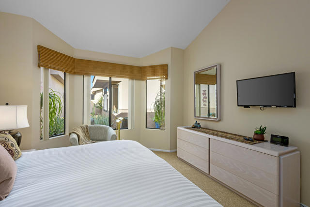Set against the serene backdrop of a picturesque lake with swans and breathtaking views of the Santa Rosa Mountains, this exquisite lakefront retreat is a true masterpiece of luxury and tranquility. Boasting the highly sought-after Legend 10 floor plan, this home offers 3 bedrooms, 3.5 baths, and a seamless blend of refined design and unparalleled comfort. From the moment you step inside, the southwest exposure bathes the interiors in warm, natural light, perfectly complementing the high ceilings, meticulously refinished cabinetry and millwork. The open-plan living spaces are furnished to provide style and comfort. At the heart of the gourmet kitchen lies the largest Viking electric range available, a chef's dream paired with sleek stainless steel appliances and wine refrigerator. Entertaining here feels effortless, designed to impress with the perfect balance of indoor and outdoor luxury. The living room, anchored by a state-of-the-art 65-inch Samsung TV purchased less than two years ago, provides the perfect place to unwind, while the grand piano--a cherished piece once owned by an internationally renowned concert pianist--adds a touch of history and elegance to the space. Step outside to your private oasis, where a stunning desert-inspired courtyard and atrium showcase unique landscaping with rare desert plants. The showstopper, however, is the expansive view of the lake--a peaceful water sanctuary spanning seven acres that's home to an array of swans, waterfowl, and birdlife. This much sought after lakeside location offers a rare sense of connection to nature, and beauty. Whether it's sipping coffee in the morning on your private patio or watching the captivating sunsets over the mountains, every moment here is destined to feel extraordinary. This is more than just a home; it's a lifestyle defined by beauty, luxury, and exclusivity. Sold furnished