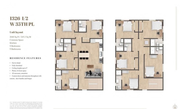 Fantastic opportunity to purchase a newly constructed 70 room student housing facility (including 4 ADUs) within a half mile proximity to USC with A+ Interior Buildouts compared to the competition, in amazing condition. The subject is a 12-unit, four-story, 2024-built co-living student housing apartment complex with a unit mix consisting of four bedroom, seven bedroom, and nine bedroom units exhibiting an average size of 1,794 square feet. It is operating as a fully furnished co-living apartment with 70 bedrooms leased individually on a per bedroom basis with a 308-square-foot average bedroom suite size. The project is leased as a fully furnished Co-Living apartment, on a per bedroom suite basis. The living room and dining room include sofas, tables, desks, chairs, fixtures, and furnishings. Unit amenities include central air conditioning, dishwasher, keyless entry, premium appliances, premium flooring, range hood, range/stove, refrigerator, in-unit washer/dryer and solar. Bedrooms include bed, dresser, desk, chair, etc. Cookware, dishware, silverware, cleaning supplies, soft goods and furnishings are not included in the sale price. Project amenities include secured access and security surveillance. Subject parking is comprised of 10 surface spaces. The subject is currently fully occupied.