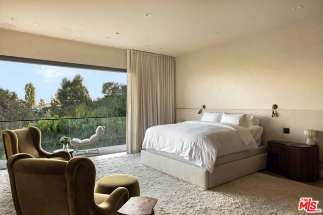 Set on one of Brentwood's most coveted streets, this three-story architectural masterpiece has been fully reimagined by Ashe Leandro, AD100 designer from New York, delivering a seamless blend of cutting-edge design and California indoor/outdoor living. The moment you enter the sweeping glass entryway, panoramic ocean views unfold, setting the tone for the home's striking aesthetic and unmatched sense of privacy.Boasting six bedrooms, the residence features a top-of-the-line chef's kitchen and expansive living spaces flooded with natural light through Fleetwood sliding glass doors that open directly to the backyard oasis. The upper level houses four en-suite bedrooms, including a lavish master suite with a grand walk-in closet and an oversized spa-like bathroom, complete with a stand-alone tub and steam shower overlooking the city and the Pacific Ocean.The lower level elevates entertainment to a new standard with a state-of-the-art home theater, fully illuminated onyx bar, temperature-controlled wine cellar, private gym, and guest bedroom, all seamlessly integrated with a Crestron home automation system for effortless living. Every corner of the home showcases meticulous design, exceptional craftsmanship, and a rare vision, making it perfect for families, couples, or any buyer looking to be in prime Brentwood with architectural integrity and panoramic views.
