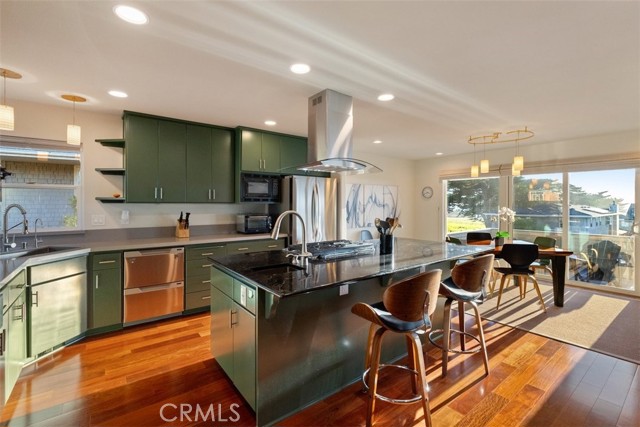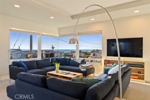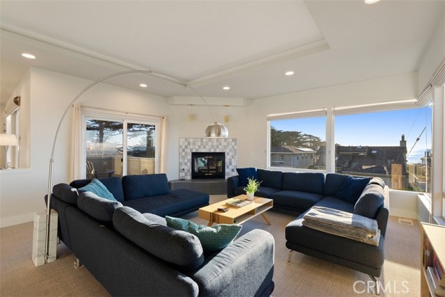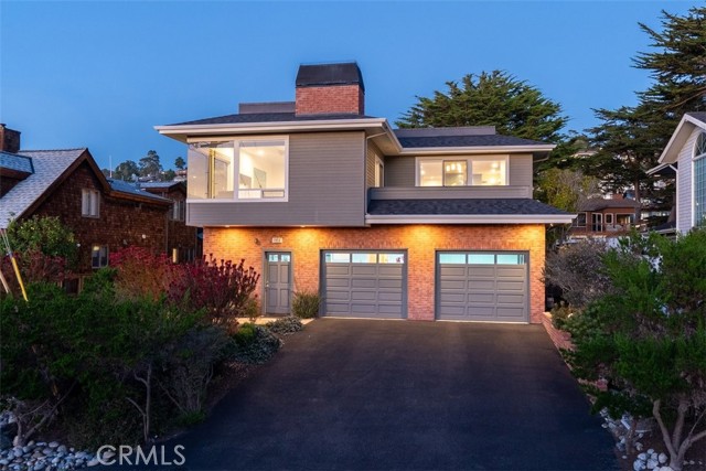 Experience refined coastal living in this beautifully updated 3-bedroom, 2 full bath, 2 half bath Marine Terrace home offering 2,721± sq. ft. of thoughtfully designed living space. Ideally positioned near beach access, Lampton Park, and the trails of Fiscalini Ranch Preserve, the home sits at the quiet end of the street with views across Rancho San Marino, providing exceptional privacy and a seamless connection to Cambria’s natural beauty. The upper level is designed to capture light and views, featuring the main living areas—including the living room, kitchen, and dining room—framed by sweeping ocean and coastline vistas. Sunlight fills the open-concept spaces, while a tiled front deck offers an ideal setting for sunset views and coastal breezes. A sheltered secondary deck provides a peaceful retreat overlooking ranchland when the wind rises. The primary suite, also located on this level, enjoys ocean views and warm evening light, creating a serene and private escape. The lower level includes two additional bedrooms, a well-appointed laundry and hobby room, and access to the spacious two-car garage. The garage is complemented by a large workshop with high ceilings, offering excellent flexibility for storage, projects, or gear. An expansive backyard, accessible from all levels of the home, enhances outdoor living and future potential. Thoughtfully refreshed throughout, the residence features a new roof, updated flooring and bathrooms, fresh interior and exterior finishes, new appliances, modernized systems, a whole-house water filtration system, and an EV charger. With its elevated setting, versatile floor plan, and extensive updates, this Marine Terrace home offers a rare blend of comfort, functionality, and timeless coastal appeal.