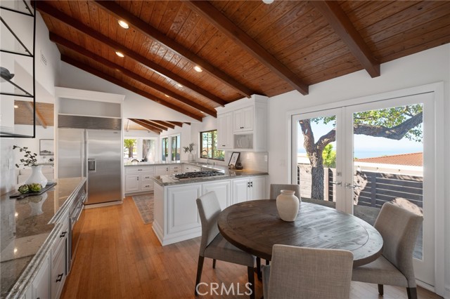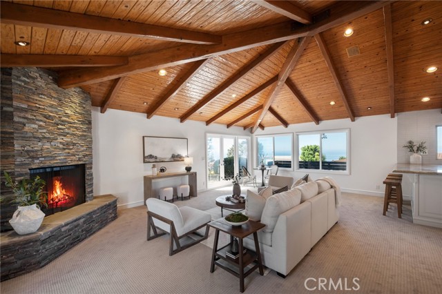 Golden hour on the Peninsula doesn’t announce itself; it simply arrives. Soft, unhurried, and quietly changing the way the day feels. At 30105 Avenida Esplendida, that light drifts through wood-beamed ceilings and open living spaces, settling gently across the home and creating a sense of calm that feels both elevated and deeply personal. Coastal air moves easily through the residence, guided by generous windows and doors that blur the line between indoors and out. The interior layout is thoughtful and intentional. From nearly every main gathering space, the living room, kitchen, dining areas, family room, and three of the bedrooms, the home opens outward to ocean views. Here, the water is not something you visit; it becomes part of everyday life. Morning coffee, shared meals, and moments of quiet productivity unfold against the steady rhythm of the coastline, always present, never overpowering. Living and entertaining spaces are positioned on one side of the home, while the bedrooms are set apart on the other, creating a natural sense of privacy and retreat. The kitchen connects seamlessly to the living and breakfast areas, encouraging conversation and ease, while the dining and family rooms provide defined spaces for gathering or unwinding. Refreshed finishes throughout and a newly remodeled primary bath bring a clean, move-in-ready feel, without sacrificing warmth or character. Throughout the home, details speak softly but confidently. Wood-beamed ceilings add architectural depth, while expansive windows and doors flood the interiors with light. Outside, substantial copper half-round gutters wrap the residence, a subtle yet striking detail that reflects craftsmanship and ages beautifully over time. Beyond the interior, the experience continues outdoors. A Tuscany-inspired courtyard wraps gently around the home, creating a private world of its own. A pool and spa anchor the space, complemented by a built-in Lynx and Viking outdoor kitchen, a cozy fireplace, and multiple patios designed for long lunches, evening gatherings, and summer nights well spent. It’s a setting that feels transportive; designed not to impress loudly, but to be lived in fully. Properties that offer this balance of architectural warmth, usable outdoor living, and ocean views are increasingly rare. Avenida Esplendida is meant for living well, gathering often, and staying awhile. All just moments from Los Verdes Golf Course, shops, restaurants, and within the award-winning PVPUSD.