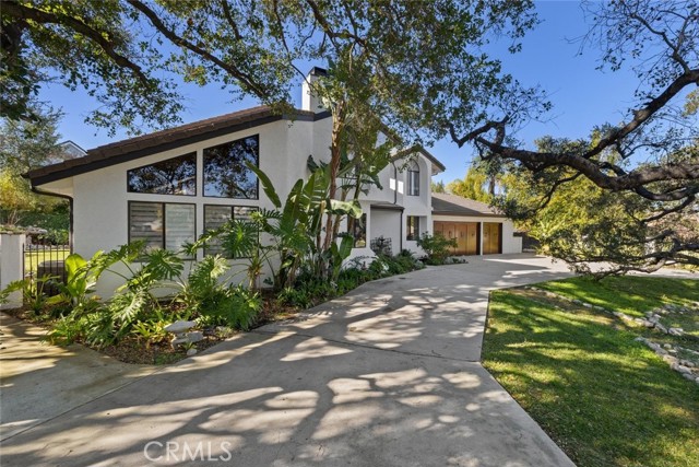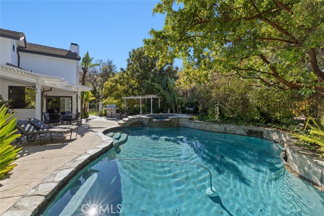 Welcome to this exceptional single-family home in the highly desirable Vantana Oaks community of Thousand Oaks! Nestled on a spacious 20,037 sq ft lot, this stunning 4-bedroom, 3.5-bath residence offers 3,475 sq ft of beautifully designed living space. Built in 1982 and thoughtfully updated, it combines timeless charm with modern comforts, highlighted by majestic mature oak trees that grace the property and enhance its private, oasis-like feel. Step outside to a front yard shaded by a grand mature oaks, leading to a large circular driveway that provides ample parking and elegant curb appeal. The three-car garage features beautiful wood garage doors for added sophistication. Inside, the chef’s kitchen shines with rich wood cabinets, stainless steel appliances, and an inviting layout perfect for everyday meals or entertaining. The remodeled master bathroom is a true retreat, complete with a luxurious soaking tub, separate shower, and large vanity. Enjoy elegant hardwood floors downstairs on the main level and in the master bedroom for warmth, durability, and sophisticated style. The main level offers flexible living with a downstairs bedroom/office and full bathroom, plus a convenient powder room for guests. Upstairs, find three additional bedrooms served by two full bathrooms. Relax and unwind in the cozy sitting area off the living room, featuring a charming fireplace — ideal for gatherings year-round. The private backyard is your personal paradise, complete with a sparkling swimming pooland spa , lush garden, and serene surroundings that create a true retreat.