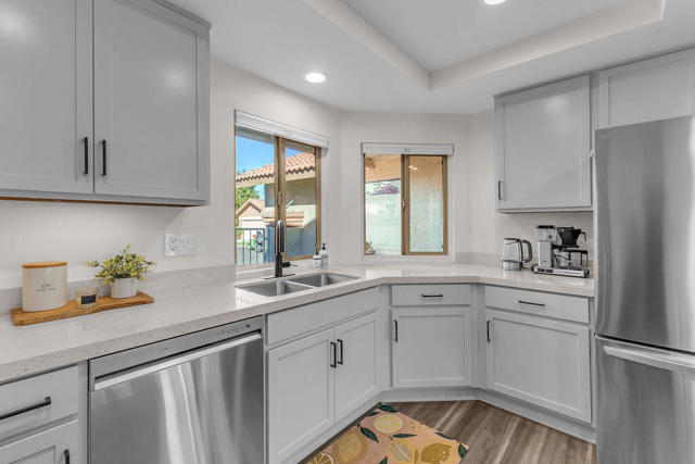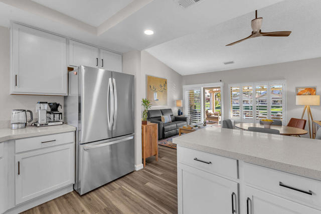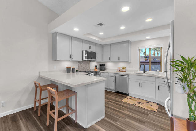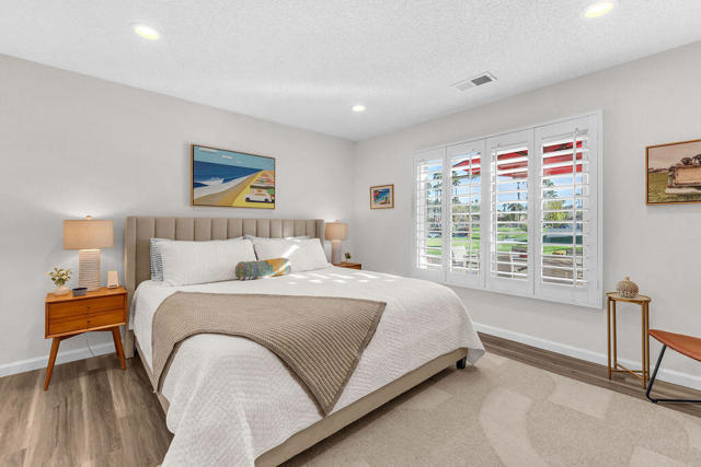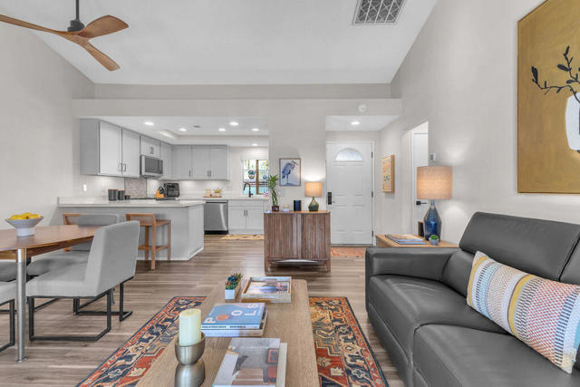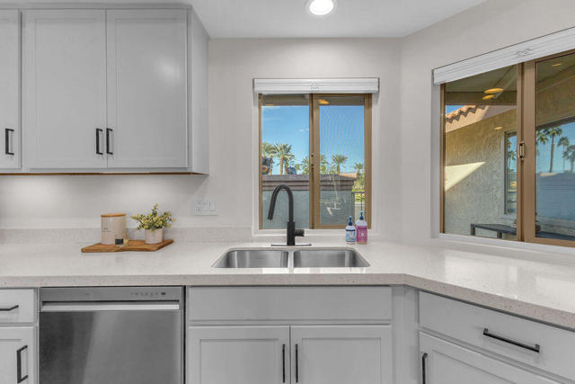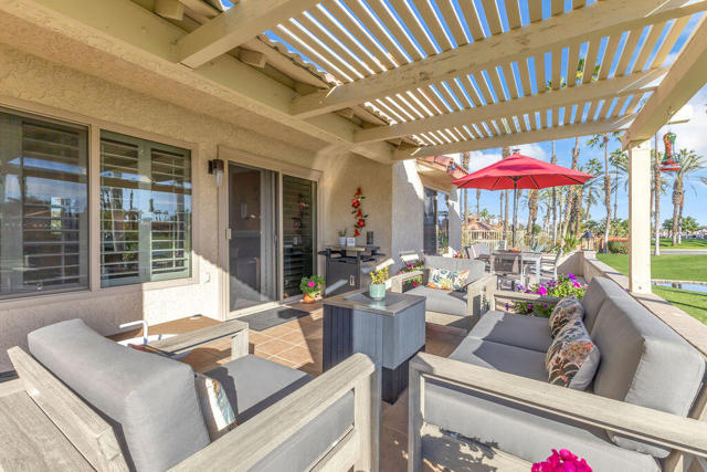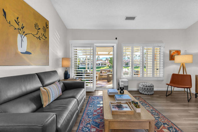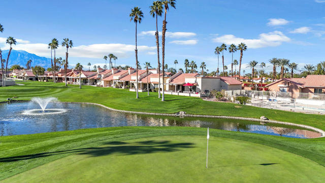 Imagine waking up to a panorama that takes your breath away--180-degree views of lush fairways, shimmering ponds, and the majestic Santa Rosa, San Jacinto, and Chocolate Mountains framing the horizon. Picture yourself savoring morning coffee or your favorite evening libation from the south-facing wraparound patio as the desert sun paints the sky in vivid hue. Imagine stepping inside a home that feels as fresh and inviting as the view. Vaulted ceilings soar above a space filled with natural light, enhanced by upgraded windows and elegant plantation shutters. The kitchen gleams with quartz counters, LG appliances, and LED lighting, while newer mechanicals ensure peace of mind. Every detail whispers quality and comfort. Imagine welcoming friends in your private entry courtyard, or relaxing in the adjacent pool and spa, thoughtfully sunken for maximum privacy and convenience. This is a location unlike any other in the community--special, serene, and perfectly positioned. From first tee to last light, Oasis Country Club weaves sport, social life, and serenity into a rhythm that feels unmistakably like vacation! When you're ready to explore beyond the gates, you're just minutes from world-class experiences: the Indian Wells Tennis Garden, home of the BNP Paribas Open; the charm of La Quinta; and the luxury shopping and dining of El Paseo. Now, stop imagining. Make it yours. This is more than a home--it's a lifestyle, a sanctuary, and a rare opportunity to turn your dream into reality! BROKER OWNED.