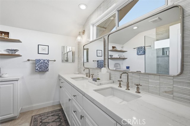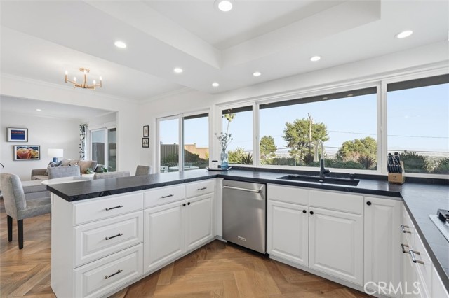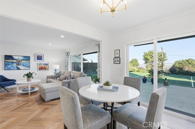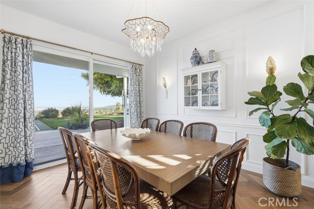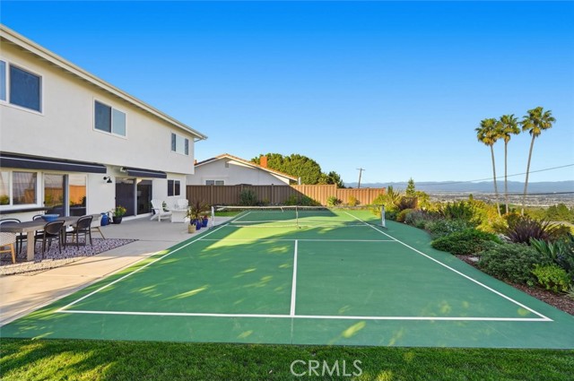 Sweeping city, downtown and mountain views set the tone at this beautifully refreshed Peninsula Center home where every upgrade was chosen with style and function in mind. French white oak hardwood flooring pairs with new carpet, updated stair railings, a skylight and all-new solid core wood doors with new hardware. Throughout, enjoy all-new LED recessed lighting and designer fixtures that bring a polished, current feel to every space. The spacious living room is anchored by a fireplace finished with marble tile for a clean, high-end focal point. A few steps down, entertain with ease in the formal dining room featuring custom moldings, a dramatic statement light fixture and sliders that open outdoors for effortless indoor-outdoor flow. The kitchen has been fully updated with all-new appliances and elevated finishes including Vadara quartz counters, natural stone granite with a leather finish and an Artisan Stone Tile backsplash that adds depth and texture. A dedicated wine room offers beverage refrigeration and racks for your collection. Just off the kitchen is a casual family room with easy outdoor access to enjoy the regulation-sized pickleball court with a removable net that easily converts to a sport court or expanded patio space. The lower yard is finished with artificial turf, ideal for a putting green or play area. Host weekend gatherings around the built-in BBQ island complete with grill, storage and seating for six, all surrounded by drought-resistant native landscaping accented by citrus trees. Upstairs bedrooms feature vaulted ceilings and new windows for volume, light and comfort. The primary suite is a true retreat highlighted by a spa-inspired bath with dual sinks, an onyx backsplash and a custom closet designed for organization. Practical upgrades continue in the garage with new drywall, insulation and a large attic with a pull-down ladder, plus a 220V 50-amp EV charging plug. Additional features include a Nest thermostat and a new garage door.