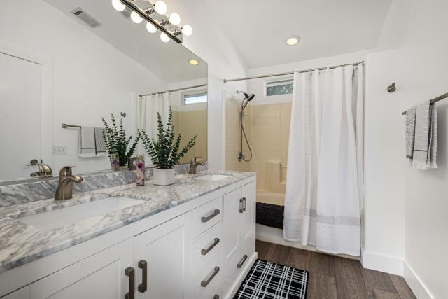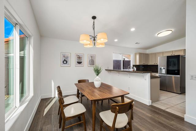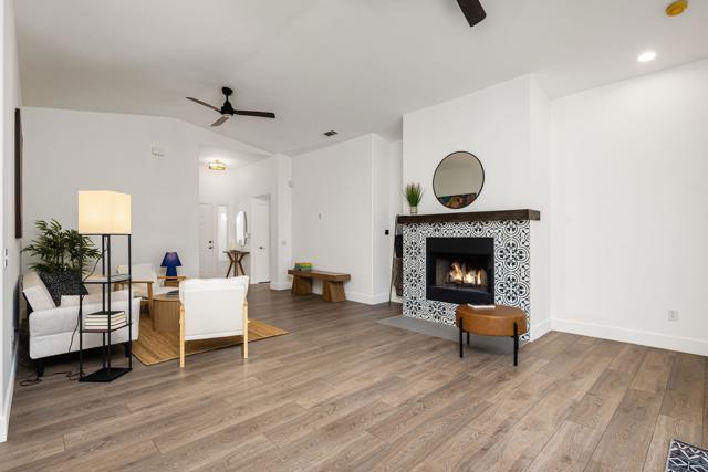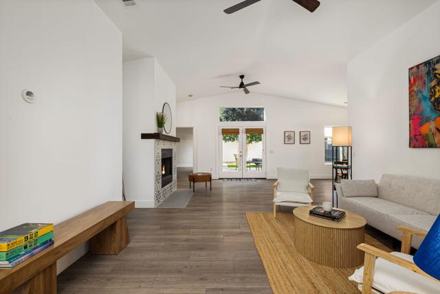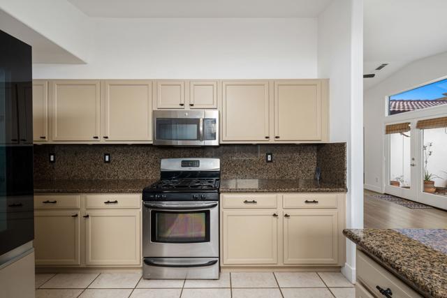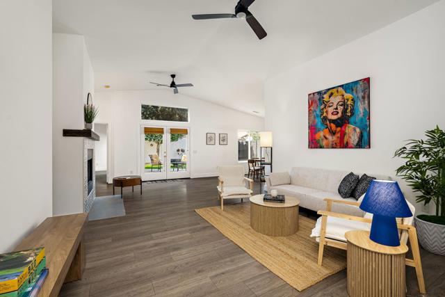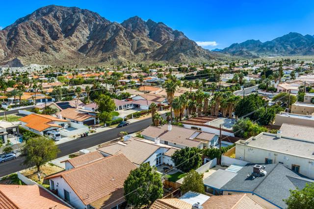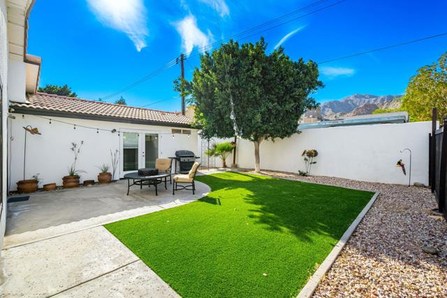 This beautiful 3-bedroom, 2-bath single-family residence sits high in the best part of La Quinta Cove, offering gorgeous mountain views from the front and back yards in a serene setting. The property was tastefully updated with refreshed finishes just a couple of years ago, including top-to-bottom paint, and is ready to welcome its new owners. The open floor plan flows beautifully, with nice privacy and separations between the primary and guest bedrooms. The great room features a cozy fireplace, updated flooring, and new French doors that open to a large private backyard, ideal for relaxing or entertaining. The spacious kitchen features granite countertops, refinished cabinets with ample storage space, and connects to the dining area via a breakfast bar. The primary suite, outfitted with a custom walk-in closet, has direct access to the backyard through the recently installed French doors. The main bathroom features a double vanity with white cabinetry and quartz countertops, a tub-shower combo, and a separate wash closet. Two generously sized secondary bedrooms offer ample closet space and share a spacious full bathroom located in the hallway, next to a convenient laundry area. You will love the quiet backyard with mountain views, a newer wood fence along the North property line, a newly installed maintenance-free artificial turf, and a patio space large enough for entertaining. Tucked behind the building is a metal shed for additional storage. The home has a central, well-maintained heating and cooling system that runs on propane. Located near hiking trails, shopping, dining, and many local amenities, this property is perfect for either full-time living or as a secondary residence, surrounded by the magic of the Santa Rosa mountains. Make it yours and enjoy the no-HOA home ownership, lower cost utility district, in this established arts-inspired neighborhood. Additional photos coming soon.