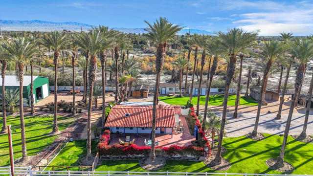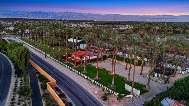 Welcome to Harvest Moon Ranch, a Hidden Gem on Acreage in Coveted La Quinta! A rare opportunity to own a truly unique property set on 2.24 acres with beautiful mountain vistas of the Santa Rosa Mountains. This charming hacienda-style retreat blends privacy, natural beauty, and lifestyle, creating an ideal escape for outdoor and recreation enthusiasts. Wander the grounds beneath approximately 100 mature date palms, take in unforgettable sunrises and sunsets, and enjoy the freedom of wide-open space rarely found this close to everything. The setting feels secluded and peaceful, yet never remote.The property includes an impressive workshop featuring an indoor pickle-ball court, along with ample space for cars, RVs, and boats. With expansive acreage and a versatile layout, the land may allow for a custom estate, or additional residences similar to the existing home--offering outstanding potential for multigenerational living, income opportunities, or long-term value. Located just steps from Andalusia, PGA West, The Palms, and The Quarry, and only minutes from world-class golf, tennis, polo, dining, and shopping. This is a rare blend of space, privacy, and proximity--an exceptional property with endless possibilities.