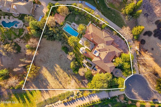 Tuscan perfection! Timeless! Set on a tranquil 1.5-acre cul-de-sac lot, this Italian Villa in Westlake Village stands as one of the most sought-after estates in the area. Designed for those who appreciate luxury living and entertaining, this European-inspired residence offers incredible mountain views and ultimate privacy, all within the exclusive Country Club Estates community. With approximately 11,000 square feet of living space, the home seamlessly blends classic elegance with modern comforts.The grand formal living room welcomes you with soaring ceilings and ample natural light, while a cozy library offers a quiet retreat. The expansive gourmet kitchen, ideally located next to the family room, is a chef's dream. It features a distressed wood-beamed coffered ceiling, custom copper accents, a full wet bar, and a wine cellar. A striking fireplace anchors the space, making it perfect for both casual family gatherings and formal entertaining. Adjacent to the kitchen, the formal dining room opens to a covered loggia, where you can enjoy a heated outdoor dining patio and a comfortable lounge area for year-round entertaining.On the main level, you'll find a private apartment suite that offers a separate living space, kitchen, and bedroom, all with direct access to the backyard. It's the ideal set-up for guests or multi-generational living, providing both comfort and privacy.Up the grand staircase, the master retreat awaits--spacious and serene, with a beautiful marble fireplace as its centerpiece. Two generous walk-in closets provide ample storage, and the luxurious en-suite bathrooms offer a spa-like experience, complete with a soaking tub and separate sauna. This level also features four additional well-sized secondary bedrooms, each with its own en-suite bathroom, ensuring plenty of space for family and guests.Designed with Southern California's indoor/outdoor lifestyle in mind, the estate's expansive grounds include a separate casita/pool house, complete with a fireplace, kitchenette, and full bath--perfect for poolside gatherings or as a guest retreat. Lush, manicured lawns surround the property, along with formal gardens that add beauty and privacy. The centerpiece of the backyard is a sparkling pool and spa, all set against a backdrop of breathtaking mountain views.This estate truly offers the best of California living, where every detail has been thoughtfully designed to provide both luxury and comfort. Whether enjoying intimate family time indoors or hosting large gatherings outdoors, this home offers the perfect setting for every occasion.