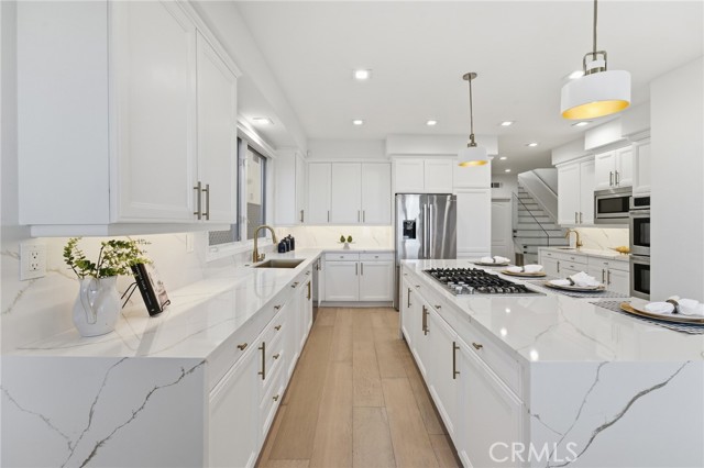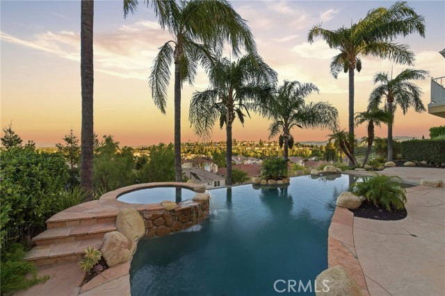 Newly remodeled! This exquisite 7612 Carmenita Lane in West Hills, CA 91304, a luxurious estate nestled in the prestigious Stonegate. This panoramic view property is ideally situated on a prime cul-de-sac street, offering unparalleled elegance and comfort. As you step inside, you're greeted by sophisticated white oak wood floors throughout, featuring a stunning herringbone pattern at the entryway and living room. The modern glass stair railings and LED lights under the stairs create a warm and inviting ambiance. The home boasts a spacious and convenient layout, with high volume ceilings and light-filled rooms, including two staircases, five XL bedroom suites each with its own bathroom, a den/office with a fireplace, and a large bonus room on the second level. Elegant upgrades enhance the beauty of the interior, including recessed LED lighting throughout, four upgraded fireplaces with a double-sided fireplace in the lavish master suite, and a newly added media room for entertainment. The master suite is a true retreat, offering breathtaking views, a sumptuous bathroom, a large closet, and a view balcony. The family room features a wet bar with a large granite counter, perfect for hosting gatherings. The spacious kitchen with ample cabinet storage and a large dining area, along with a formal dining room, cater to all your culinary needs. Outside, the low-maintenance yard boasts upgraded pool and spa equipment and upgraded landscaping – all overlooking the amazing panoramic view. Ideally located close to parks, temples, highly desirable schools, and shopping, this estate offers both privacy and convenience. Experience the pinnacle of elegance and comfort at 7612 Carmenita Lane, where every detail has been carefully considered to create a truly magnificent home.
