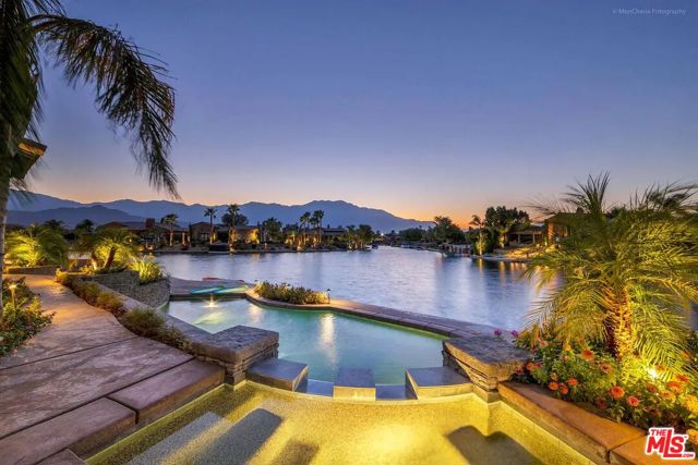 STUNNING DESERT LAKE-FRONT RETREAT!!! Welcome to 14 Via Santa Velera, a beautifully appointed home located in the prestigious gated lake community of Santo Tomas on the Lake in the heart of Rancho Mirage. This 4 bedroom, 4.5 bathroom, 3,350 sqft home sits on a massive 17,860 sqft lot and offers the perfect blend of contemporary comfort and desert elegance, ideal for seasonal or long-term stays. Step inside to an open-concept floor plan with high ceilings, abundant natural light, and seamless indoor-outdoor living. The gourmet kitchen features upgraded appliances, granite countertops, a spacious island, and ample storage - perfect for entertaining or casual meals at home. The primary suite is a private sanctuary with a spa-like en-suite bathroom, walk-in closet, and direct access to the backyard. Enjoy panoramic 270 degree lake and mountain views, along with the pool, hot tub, built-in BBQ station, fire pit, patio areas, pool table, and putting green - creating a resort-style ambiance in your own backyard. Walk down to the private dock and cruise on the lake with the 16' electric boat or use the kayaks for a relaxing evening on the lake. (Boat not pictured). Includes a social and sports membership to the Mission Hills Country Club (pool, tennis, fitness, croquet, pickleball, restaurant). Enjoy desert living at its finest! Available April 1, 2026. Long term tenants also welcome at a discounted rate. Tenant pays for electricity and gas with $500 monthly credit for each. Currently occupied by tenants but showings possible with 24 hour notice.