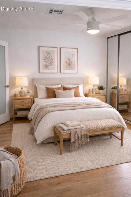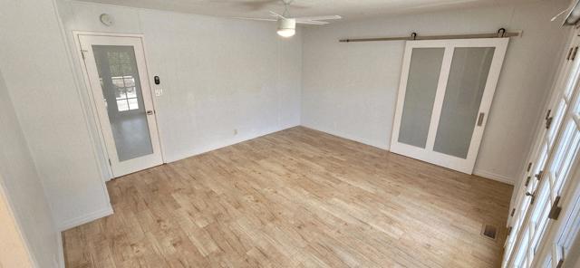 This tastefully remodeled home boasts a wide range of energy-saving improvements, including a paid-off solar system, EV charging station, newer roof, A/C and furnace, ceiling fans throughout, and dual-pane windows all designed to lower utility costs. The spacious layout features a centrally located kitchen with newer stainless-steel appliances, a walk-in pantry, quartz countertops, and ample cabinetry. Adjacent is a spacious family room with a custom bar area, perfect for daily living or entertaining guests. Recent renovations include stylish interior and exterior doors, plus fresh paint. The primary suite offers a walk-in closet and French doors to a private patio. Both bathrooms have been updated for comfort and modern appeal. The large golf cart garage includes storage and a work bench, offering a dedicated space for hobbies and projects. Located in Palm Desert Greens, a highly desirable 55+ community, residents enjoy numerous amenities including a Restaurant and Bar. You OWN the land, and a low $400 monthly HOA covers cable TV and internet, trash service, 24/7 guard-gated security, and FREE GOLF! Experience firsthand why this property exemplifies exceptional desert living.