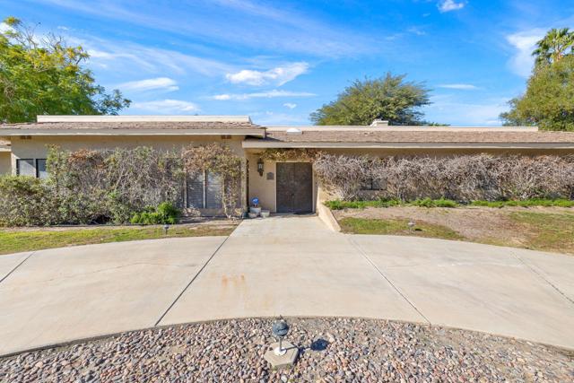 Stately family home with LOADS of potential! Custom built in 1987 by the original owners and still in the family, never on the market. HUGE lot and prime South Palm Desert location across the street from Shadow Mountain Golf Course and 2 blocks from Marrakesh Country Club. CORNER of Grapevine and Goldenrod. Oversized garage. High ceilings and good floor plan. Beautiful pool and spa also ready for refresh. Needs lots of attention and renovation, but the potential is excellent due to the location, views and large lot. READY FOR QUICK ESCROW.