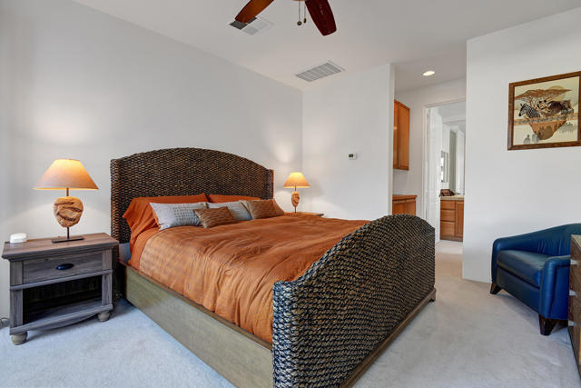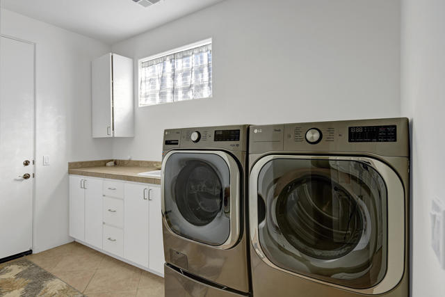 Enjoy southern mountain views from the highly sought-after Valencia Plan 3, a floor plan known for its open design and seamless indoor-outdoor living. This popular layout offers views from nearly every main living area, creating a bright and welcoming atmosphere throughout the home.Outdoor spaces have been thoughtfully upgraded, with pavers installed across all patio areas and additional pavers added along the west side of the property to extend the hardscape and enhance usability. The garage doors were replaced approximately eight years ago, and the home is equipped with top-of-the-line HVAC systems installed around four years ago, providing comfort and efficiency.Inside, the gourmet kitchen features remodeled cabinetry and additional storage on both sides of the refrigerator, blending style and function. The home also includes a new front-loading washer and dryer for added convenience.Recent improvements include a complete interior and exterior repaint and newly installed automated roll-up blinds throughout, making the home truly move-in ready.The property is offered fully furnished per inventory list.A well-maintained and thoughtfully upgraded home offering one of the community's most desirable floor plans, exceptional mountain views, and modern updates throughout.
