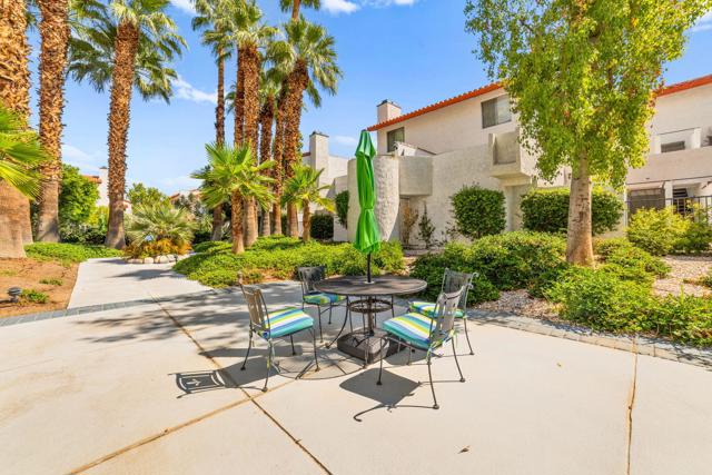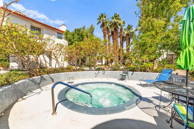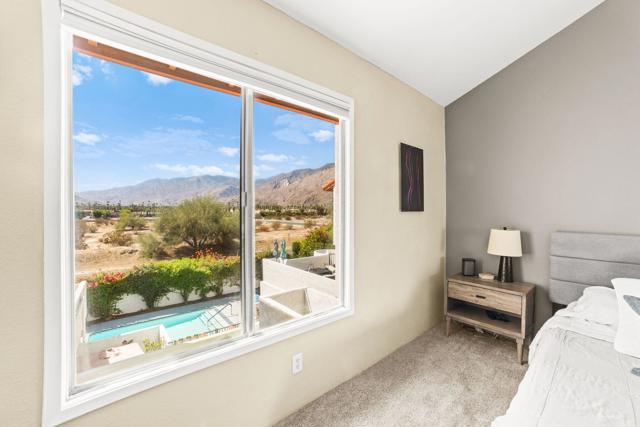 Bright, beautiful and fully remodeled 2 bedroom townhouse in Downtown Palm Springs. Caballeros Estates is a well maintained, secure complex walking distance to Arenas Road and all the attractions in the center of town. This townhouse style unit is arranged over two floors with three privarte terraces to enjoy the indoor/outdoor living that Palm Springs is famous for. The first floor features a remodeled kitchen with high end appliances and brand new counter tops, along with a separate laundry room and a half bath for your convenience. The dining area has its own terrace, and the luxurious living room has a wet bar, fireplace and a large south facing terrace with views over the pool, palm trees and the mountains beyond. The primary bedroom is upstairs with far reaching views along with a second bedroom with another terrace and a large fully remodeled bathroom. This unit has the best location within the resort-like complex! Secure subterranean parking for one car plus plenty of guest parking. 30 day minimum rentals. HOA is $581/month. Land lease is $211/month (until 2064).
