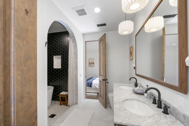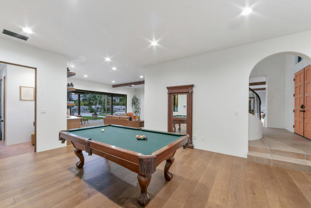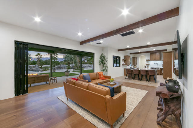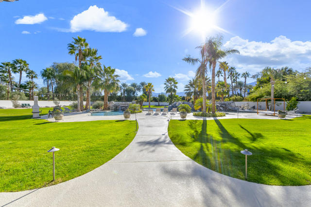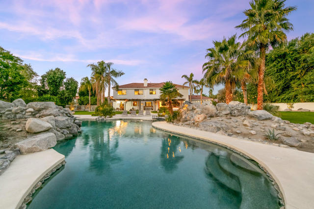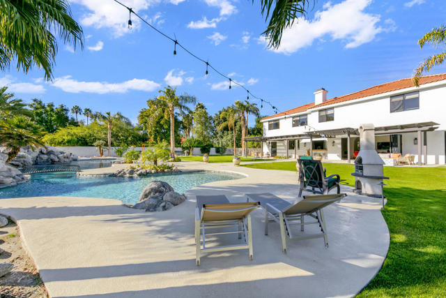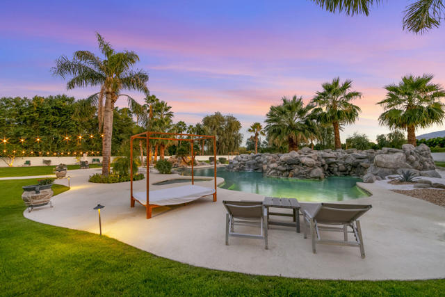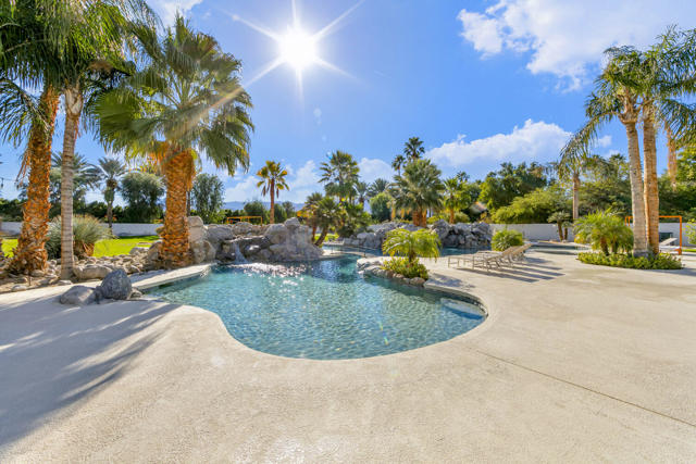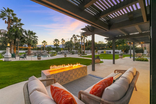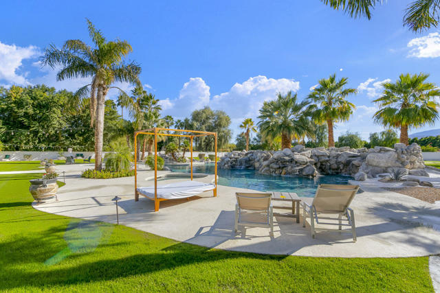 Located behind the gates of The Estates of La Quinta, 81935 Mountain View Lane presents a rare opportunity to own a true resort-caliber estate in one of the desert's most private and sought-after enclaves. Perfectly positioned near the world-class Desert International Horse Park, the Jacqueline Cochran Regional Airport, PGA West, and the exclusive Madison Club, this property offers unmatched access to elite lifestyle amenities while maintaining exceptional privacy within La Quinta. The estate is set on an expansive 1.25 acres, providing exceptional space, privacy, and the scale necessary to support its resort-style amenities and grounds. Designed for both grand-scale entertaining and everyday luxury, the estate showcases one of the Coachella Valley's largest resort-style pools, enhanced by dramatic cascading water features and expansive lounging areas. A private par-3 golf hole with crushed white Augusta-style sand bunkers creates a one-of-a-kind backyard experience rarely found in residential estates, delivering a true country club atmosphere at home.The residence has been thoughtfully remodeled with high-end finishes and architectural details throughout its six bedrooms and six-and-a-half bathrooms. Interiors feature 10-inch wide-plank European oak wood flooring, imported Spanish tile, and Carrera white marble throughout. Custom tile bathrooms, two indoor Jacuzzi tubs, and solid 8-foot alder doors elevate the sense of craftsmanship and quality at every turn. The gourmet kitchen and entertaining spaces are anchored by Wolf and Sub-Zero appliances, three wine refrigerators, a full wet bar, and a dramatic 17-foot Fleetwood-style bi-fold door that seamlessly connects indoor and outdoor living. A six-foot pass-through window further enhances the flow for hosting, while custom cast-iron A/C vents and a whole-house central vacuum system reflect the home's attention to refined detail and modern convenience. 81935 Mountain View Lane is a rare offering that blends privacy, proximity, and resort-level amenities into a single exceptional estate--an ideal retreat for those seeking the highest level of luxury living in La Quinta.