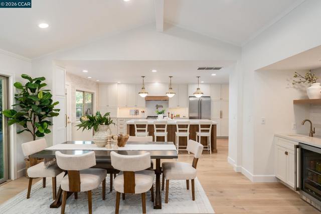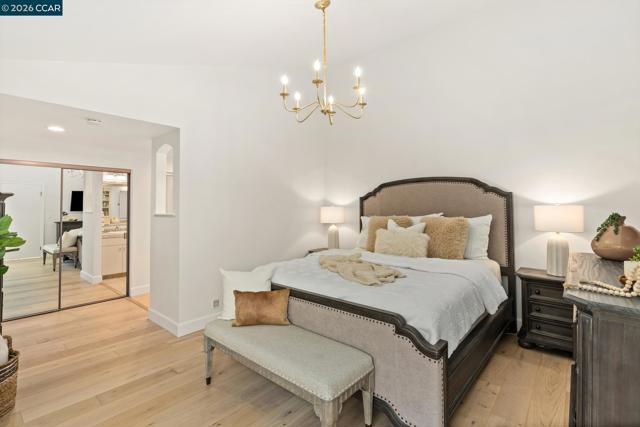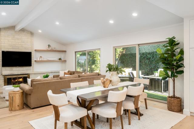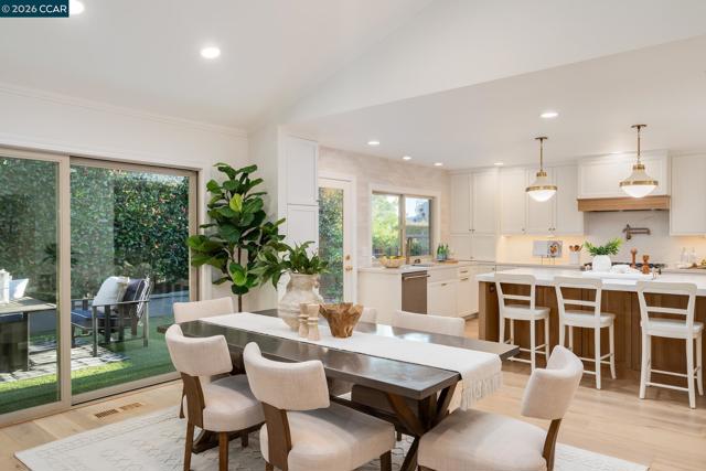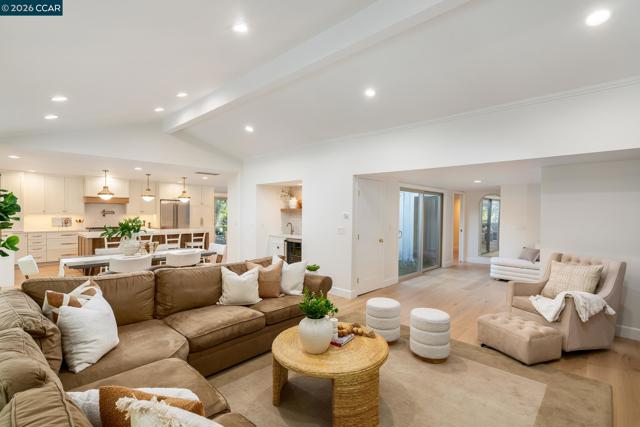 This beautifully remodeled, single-level Scottsdale model is highly sought-after, boasting a premium location adjacent to a lush greenbelt within Crow Canyon Country Club. The home is flooded with natural light, highlighting the vaulted ceilings, elegant crown moldings, & brand-new French oak hardwood flooring found throughout. At the heart of the residence is a spectacular new gourmet kitchen. Features custom cabinetry, quartz countertops, a striking custom backsplash, designer lighting, & top-of-the-line stainless steel appliances, including a hooded range. A large center island provides seating for four, & an adjacent wet bar perfectly balances style & functionality for entertaining. Offering four spacious bedrooms & two-and-a-half beautifully updated bathrooms, the layout provides both comfort & flexibility. Outdoors, an expansive private patio & yard create a serene setting ideal for relaxing or entertaining. This is a true turnkey opportunity in an ideal location, close to the gate, clubhouse, & all the desirable amenities that define Crow Canyon Country Club living.