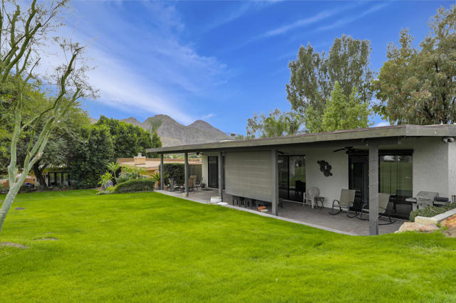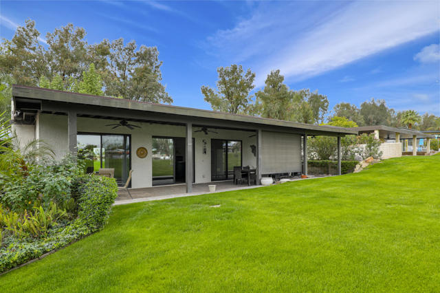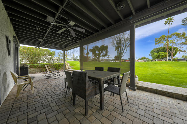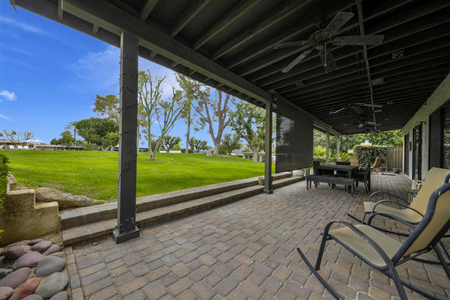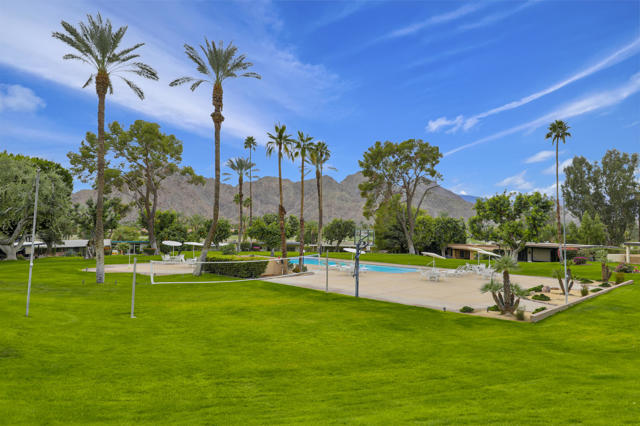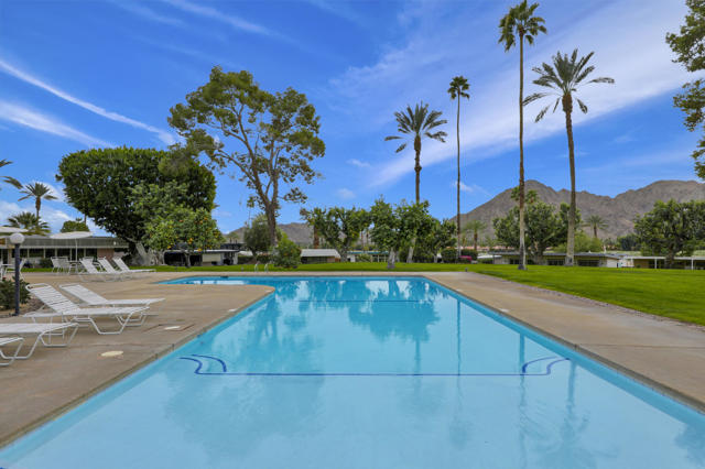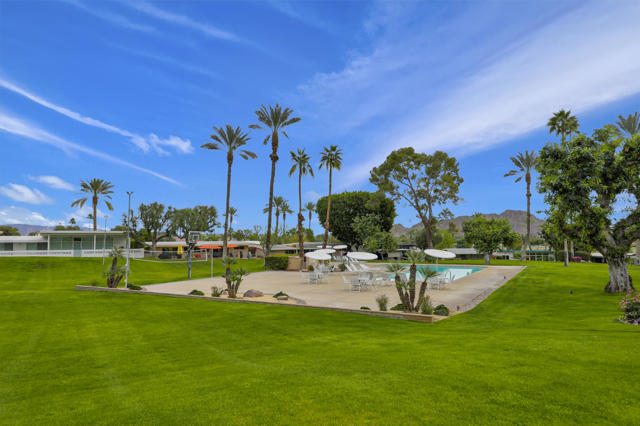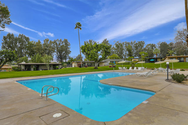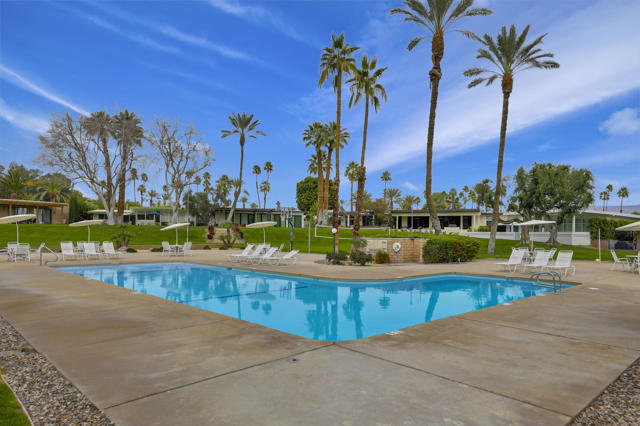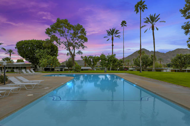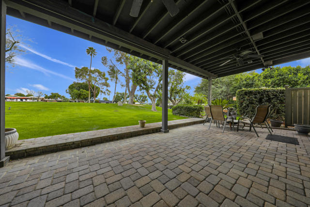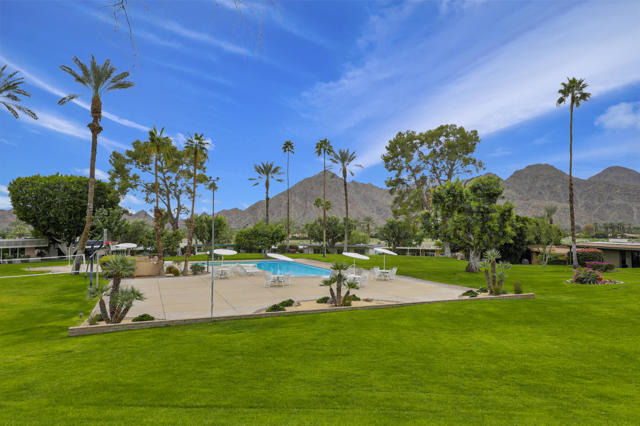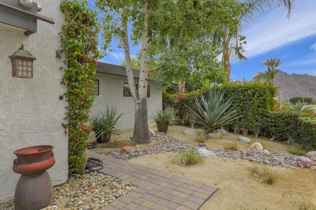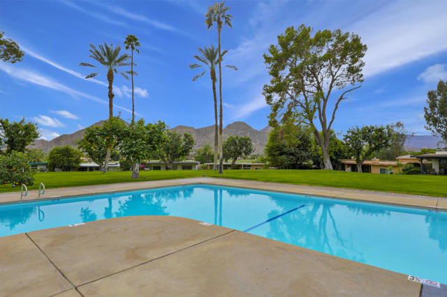 Indian Wells Village is a hidden little gem with 3 ''pods'' of homes around huge greenbelts with community pools. This 3 bedroom home has walls of glass along the park like setting. The expansive great room floor plan leaves many options for furnishings. Kitchen has extra long granite counter-bar and walk-in pantry. Stove top in Kitchen is electric. The primary suite is at the opposite end of the home from the two guest rooms.. It is oversized with plenty of space for desks, exercise equipment or ?? Direct access from the garage to the entry hall makes life easier. The back cobblestone patio spans the length of the house and makes it hard to leave this view and setting. Situated between the Indian Wells Tennis Gardens and the Indian Wells Resort makes this the perfect location.
