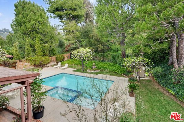 Offered for the first time in nearly five decades, this beautifully maintained residence presents a rare opportunity to reimagine a timeless home for a new generation. Poised for its next chapter, the property offers an exceptional canvas for thoughtful renovation or bespoke enhancement. A gracious two-story entry sets the tone, opening to an elegant living room with soaring vaulted ceilings and a formal dining room highlighted by a classic bay window. The center-island kitchen flows seamlessly into the family room, with both spaces opening through glass doors to a covered patio ideal for refined indoor-outdoor living, al fresco dining, and entertaining. The main level also features a versatile bedroom or office with direct access to the private rear grounds, where a newer pool and spa are framed by lush, grassy areas, creating a serene retreat. Upstairs, the generously scaled primary suite offers a dual-sided bath with a shared shower, while two additional bedrooms share a well-appointed bathroom. Residents enjoy access to four community tennis courts, a pickleball court, and 24/7 security patrol, completing this offering of comfort, privacy, and lifestyle appeal.