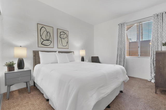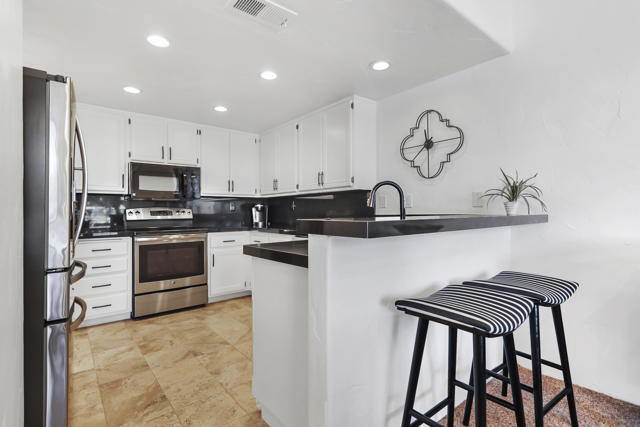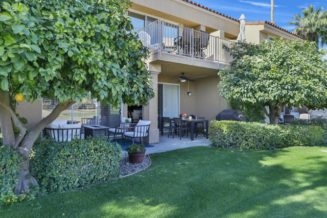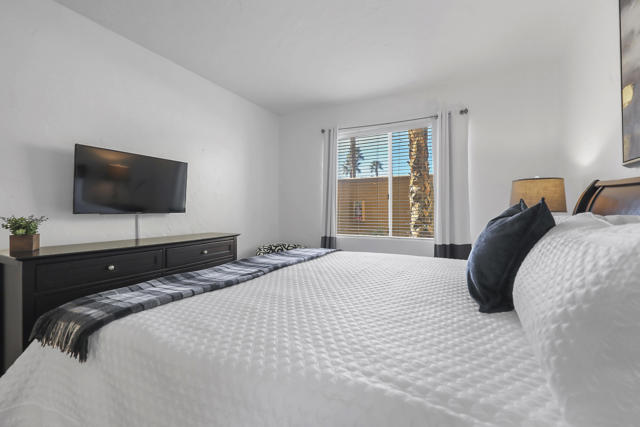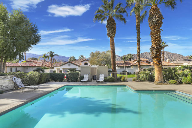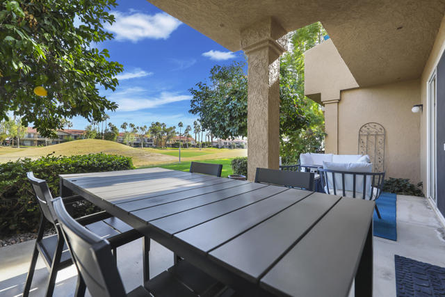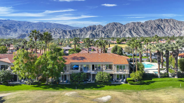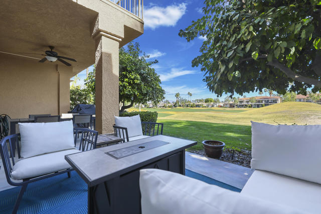 The perfect seasonal retreat. Thoughtfully designed with a clean, contemporary aesthetic, this home highlights amazing design features throughout and is move-in ready for immediate enjoyment. This 2-bedroom, 2-bath condo features a light and open layout highlighted by a full wall of sliding glass doors that open to the covered outdoor patio--designed to maximize natural light and capture the stunning fairway views. The inviting living spaces flow seamlessly to the outdoors, creating the perfect setting for relaxed desert living during the winter season. The gourmet kitchen is designed for both style and function, complete with stainless steel appliances, a newer LG refrigerator, and seamless access to the patio for easy indoor-outdoor living. Two spacious primary ensuite bedrooms provide ideal privacy and flexibility for hosting guests or family, making this home as comfortable as it is versatile.Fresh, updated decor throughout creates a clean, modern feel, while the new AC adds peace of mind for year-round comfort. Additional features include a private laundry room and a two-car garage with generous storage--perfect for seasonal use.Step outside and enjoy mornings, afternoons, and sunsets overlooking championship golf--ideal for entertaining guests or simply unwinding after a day on the course. Situated on the 5th hole of the Jack Nicklaus Tournament Course, enjoy world-class golf views directly from the patio, making it an exceptional setting during the American Express Tournament. Embrace the convenience of being just steps from the community pool, perfect for warm afternoons, and unwind in the evenings by the firepit. Whether used as a winter getaway, full-time residence, or lock-and-leave retreat, this home delivers the best of desert golf living with unparalleled views and access to world-class amenities. Move right in and enjoy the entire season in style and comfort. PGA West community amenities include exterior maintenance, cable TV, internet, trash service, 24-hour security, and access to multiple community pools. A rare opportunity to own a seasonal escape with unforgettable tournament and fairway views in one of La Quinta's most sought-after golf communities.