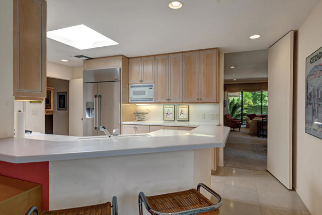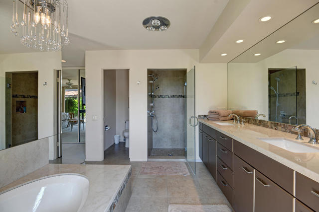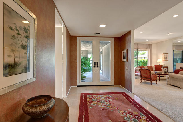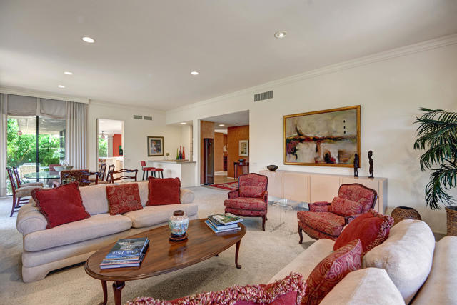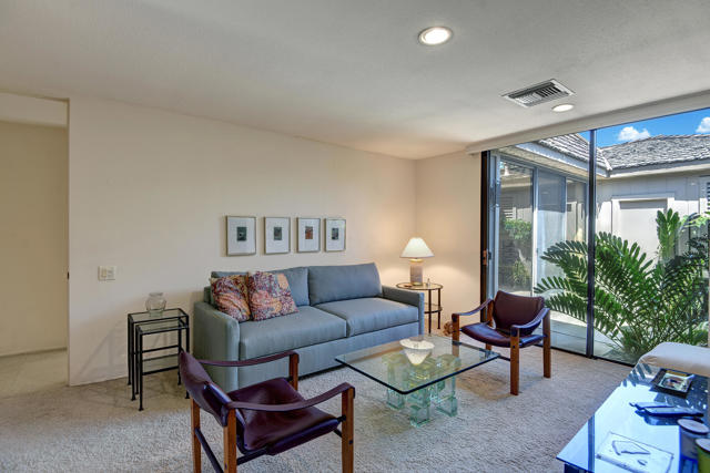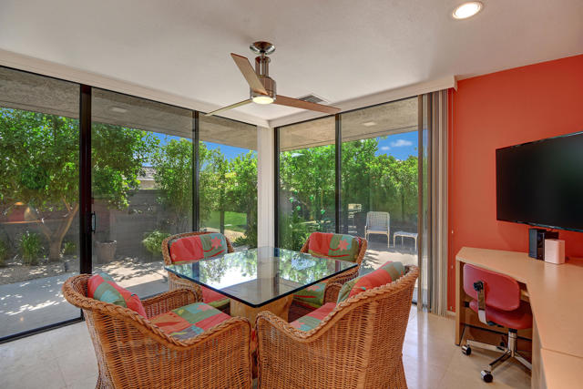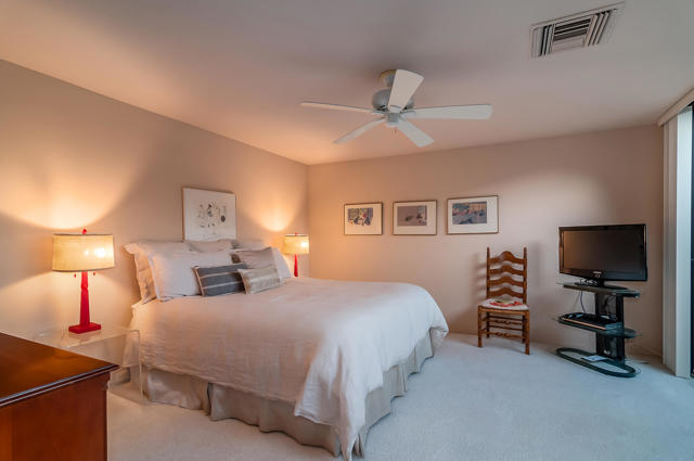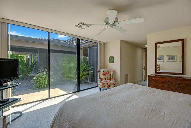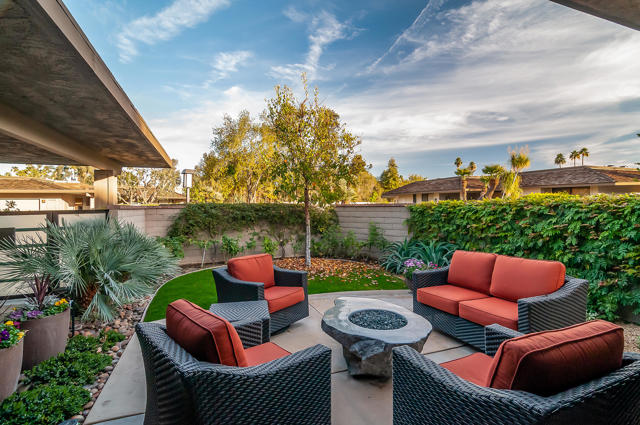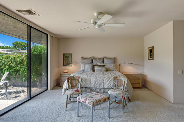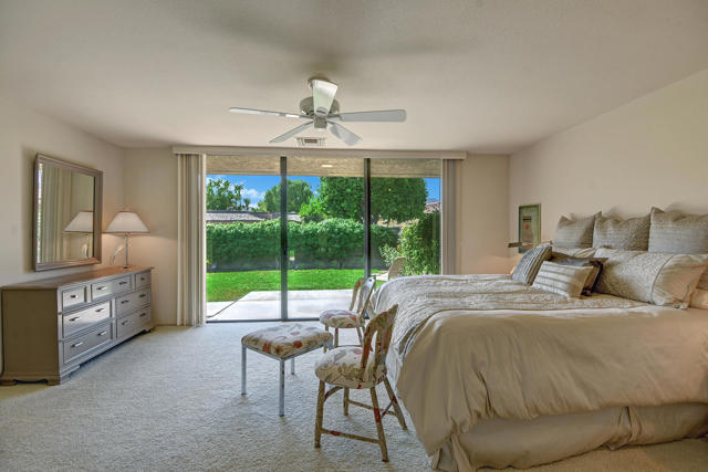 2 Bed 3 Ba plus den (family room) Pinehurst floor plan on a quiet corner of a cul de sac at The Springs features 2 master en-suites with oversized walk in closets and king sized beds. It has south AND western mountain views with generous patios, a fire pit and lush green lawn and private garden. This peaceful setting private home is located near one of the 46 community pools. Each bedroom is carpeted and has access to patio areas. Tile floors in hallway, kitchen & bathrooms; Light and bright with skylights throughout and gas range. Rent includes Cable, WiFi, Trash collection, Landscape Maintenance, and $250 per month utility allotment (cumulative) plus an optional Social/Tennis/Fitness Center Membership @ The Springs available at a one time fee of $200. Great central location near tennis/pickle courts and State-of-the-Art fitness facility. The Springs is located across from Eisenhower Medical Center and just down Bob Hope to The River - restaurants, movies and shopping. Sorry, no pets;