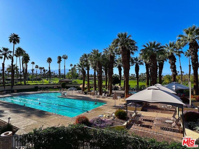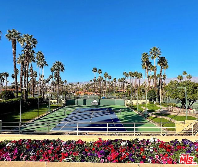 As one of the largest and highly-coveted layouts in the community, this stunning design consistently captivates buyers in search of timeless appeal and exceptional value. Its rare blend of spaciousness, elegance and practical luxury creates an inviting ambiance of comfort and style - perfect for desert living. Vaulted ceilings begin in the front corridor off the private front courtyard and extend throughout the main living spaces, with skylights amplifying the home's natural glow. An expansive great room, complete with fireplace and bar, opens directly to the tranquil sounds of Ted Robinson-designed waterscapes on the covered patio. This west-facing panoramic view of the sunset on the mountains and 9th hole of the Championship Golf Course is exquisitely designed for indoor-outdoor entertaining. Relax in the spa-inspired master suite with elegant finishes that include a walk-in closet beautifully integrated into a dressing space, and flows into the primary bath, complete with a dual vanity, free standing shower and soaking tub. Experience the combination of the social luxury of Palm Valley Country Club with championship golf, resort-style pools, tennis, pickleball, fitness, fine dining, and the secluded santuary of this beautiful home!