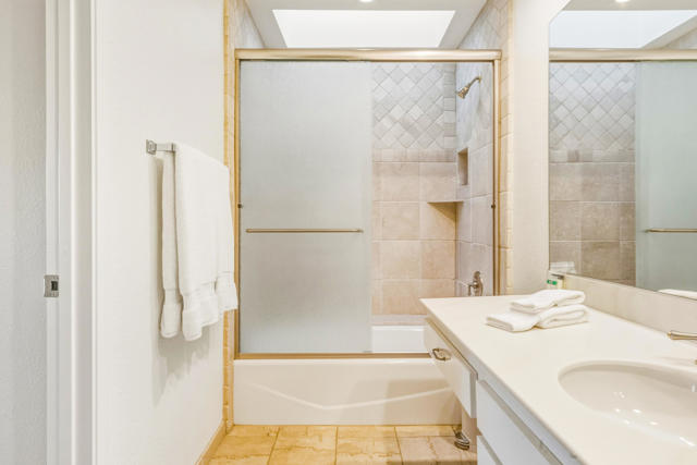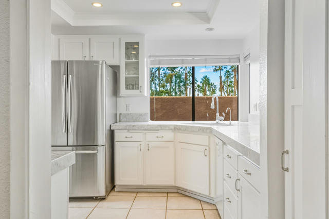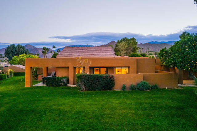 Welcome to this beautifully positioned 2 bedroom, 2 bathroom residence in the prestigious Ironwood Country Club, one of Palm Desert's most sought after gated golf communities in the Coachella Valley. This stunning property is perched above the pool in one of Ironwood's most peaceful enclaves, offering breathtaking views of Haystack Mountain just outside your front door.This thoughtfully updated home features a remodeled kitchen with modern finishes, brand new sliding glass doors throughout, new ceiling fans, and elegant wood look tile flooring that combines beauty with low maintenance desert living. The interior palette is cool and calming, creating a serene, spa like atmosphere perfect for the Palm Desert lifestyle. Contemporary furnishings are included and in excellent condition, making this a true turnkey property ready for immediate enjoyment.Begin each morning on your private east facing patio with coffee in hand as the sunrise paints the sky over the mountains in soft, shifting colors. Just below, the shimmering blue community pool adds to the tranquil desert setting. This home has a proven history as a strong income producing vacation rental, offering both lifestyle enjoyment and solid investment value in the competitive Palm Desert short term rental market.Professional property line surveys by Feiro Engineering and landscaping concepts by AK Landscaping are available, revealing multiple opportunities for expansion and enhancement with HOA approval. Whether you choose to move in and enjoy this desert retreat immediately or personalize with thoughtful upgrades, this residence offers exceptional flexibility for primary residence, seasonal snowbird escape, or investment property.Located in a quiet, serene pocket of Ironwood Country Club yet just minutes from championship golf courses, tennis and pickleball courts, multiple dining venues, fitness center, resort style pools, and spa services. The property is conveniently close to the world famous El Paseo shopping district, Living Desert Zoo and Gardens, and offers easy access to Highway 111 and Interstate 10.This is a rare opportunity to own a move in ready gem in Ironwood Country Club with mountain views, pool access, privacy, proven rental income potential, and room to grow. Perfect for those seeking luxury desert living in Palm Desert's premier gated golf community in the heart of the Coachella Valley.