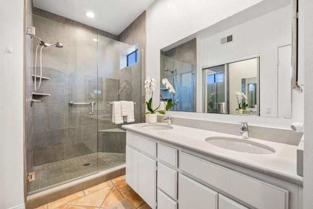 Experience the Desert Resort Lifestyle at Palm Valley Country Club and discover your own private retreat set amid lush tropical landscaping and captivating views of the Santa Rosa Mountains, golf course, and tranquil lake. This turnkey furnished beautifully updated two-bedroom, two-bathroom end-unit condo offers the perfect blend of comfort, style, and resort living. Step inside to find bright, open interiors thoughtfully remodeled to reflect contemporary desert elegance. The updated kitchen with a sunny breakfast nook opens to a spacious living room with a cozy fireplace and adjoining dining area, ideal for entertaining or relaxing with friends. Enjoy seamless indoor and outdoor living as sliding doors lead to your private patio, where you can sip morning coffee while watching golfers or unwind at sunset as the mountains glow in the evening light. Soak up the sun at a sparkling pool and spa just steps from your door. The primary suite opens directly to the patio, offering gorgeous views to wake up to each day. Its stylishly remodeled en-suite bathroom features dual sinks, a spa-like shower, and generous closet space. The guest bedroom is privately located on the opposite side of the home, complete with its own beautifully updated bathroom. Additional conveniences include an indoor laundry room and an attached two-car garage. Palm Valley Country Club offers an unparalleled resort lifestyle with a vibrant social scene and amenities. Enjoy 47 sparkling pools and spas throughout the community, Clubhouse with dining and lounge options, fitness center, Jr Olympic sized pool, luxurious spa and salon. Sports enthusiasts will appreciate two championship Ted Robinson golf courses, 13 tennis courts, and 12 pickleball courts. Ideally located just minutes from fine dining, hiking trails, El Paseo's upscale shopping, grocery stores, Acrisure Arena, & BNP Paribas Open at Indian Wells Tennis Garden. Whether you're seeking a full-time retreat, a serene weekend escape, or a high-performing short-term rental, this home delivers it all. Where every day feels like a vacation under the desert sun. Offered turnkey furnished per inventory list.