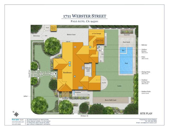 Old Palo Alto estate completed in 2012 with Spanish-inspired architecture honoring this prestigious neighborhood of legacy homes. Hand-selected materials, exposed beam ceilings, custom tilework, and refined finishes across nearly 8,000 square feet. 3 levels designed for grand entertaining and everyday living with formal living and dining rooms, private office, study center, caterers kitchen, recreation and media spaces, wine cellar, bar, fitness center, and spa-like amenities including steam shower. 6 bedroom suites include a primary suite with in-room spa bath plus a guest suite accessed from the rear yard. The gated corner lot creates a private resort environment with pool and spa, bocce court, and heated covered terrace with fire pit. Minutes from leading Silicon Valley tech centers, Stanford University, and acclaimed Palo Alto schools. Enduring quality and an exceptional lifestyle in one of the areas most sought-after neighborhoods.