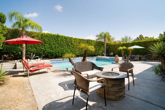 FEE LAND, means no Land Lease, You own the land! Will this beautiful home be your next desert escape? Property is ideally located in the heart of Palm Springs; near the convenience of shopping, parks, schools and a vibrant Downtown. 3 bedrooms, 2 full baths and a quiet, private backyard surrounded by privacy hedges with a backdrop view of the majestic San Jacinto mountains. If you are searching for the crown jewel of backyard pools, look no further! This pool is encompassed by dazzling blue mosaic tiles; features two waterfalls; a partially submerged tanning deck and an elevated spa with an unobstructed view of the mountains. What will you do in this Palm Springs Home? Will you relax the day away under the California sun, lying in the partially submerged tanning deck. Toast with friends in the elevated spa as you watch a dazzling desert sunset? Or, spend your evenings out on the town, entertaining guests? However you decide to spend your time, this house invites you to make memories that will last a lifetime.