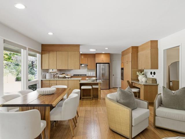 Nestled within a private cul-de-sac, this light-filled, single-level, California ranch offers an open spacious 4BR/3.5BA layout on an expansive, 1.02+/- acre lot. Minutes from Stanford and top tech hubs, it features access to top-rated Palo Alto schools. The expansive grounds are a blank canvas for an ADU/Guest House, tennis court, pool, gardens, vineyard, orchard and more! The open layout is strategically designed to embrace the expansive outdoor space, utilizing large windows and Solatube lighting to flood the interior with natural light. Additional comfort and energy saving features include a whole house quiet fan system and dual pane windows.The chef's kitchen boasts sleek stainless steel appliances, including a new Frigidaire refrigerator. The open kitchen/family room features a cozy breakfast bar, abundant cabinetry, a built in desk and an inviting casual dining area. The living room and formal dining areas are filled with natural light and accentuated by the recently refinished hardwood floors, recessed lighting and a wood-burning fireplace. A dedicated private bedroom wing with generous-sized rooms offers a sanctuary away from the main living areas and additional versatility. Conveniently located with easy access to Palo Alto and Highway 280, this property is a treasure!