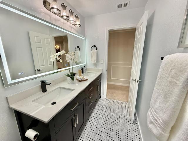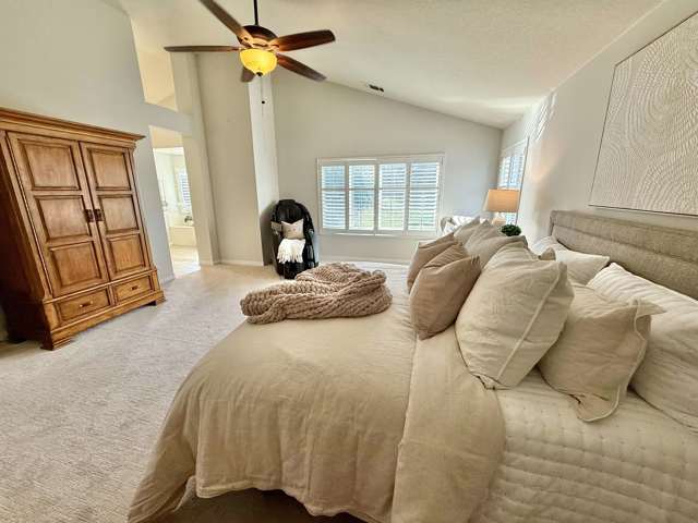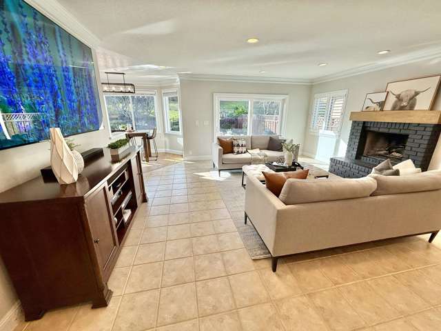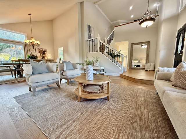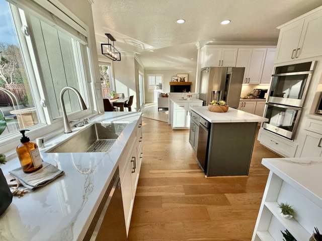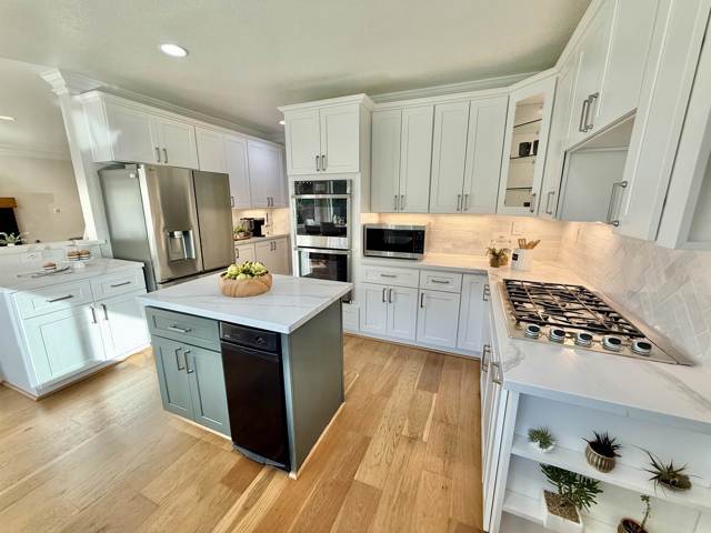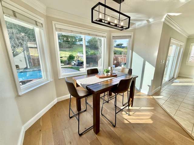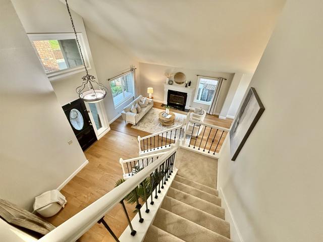 Gorgeous home in the highly desirable gated Canyon Lakes community with a phenomenal location! From the moment you arrive, you’ll be impressed by the beautiful curb appeal and low-maintenance front yard, all within a private gated neighborhood. Step inside to rich engineered hardwood floors leading through the formal living and dining rooms, highlighted by soaring vaulted ceilings and a cozy fireplace. The spacious family room is ideal for entertaining and features a unique custom bar, creating the perfect gathering space. The fully updated kitchen offers stunning quartz countertops, crisp white cabinetry, stainless steel appliances, and picturesque views of the backyard, sparkling pool, and open space beyond. Upstairs you’ll find four generously sized bedrooms, including a luxurious primary suite with a walk-in closet and spacious bathroom. The updated hall bathroom showcases modern finishes. Relax and entertain in the private backyard with low-maintenance landscaping, outdoor BBQ island, and resort-style pool backing to open space for added privacy. Additional highlights include a three-car garage with extra storage, solar for the pool and home, and numerous upgrades throughout. Minutes to shopping, dining, walking trails, and entertainment. This is the home for you!