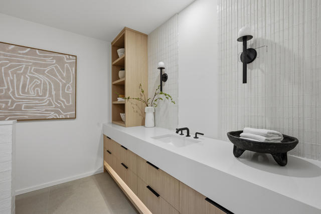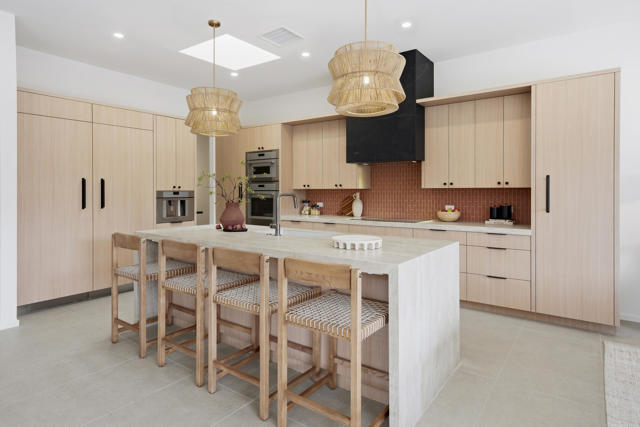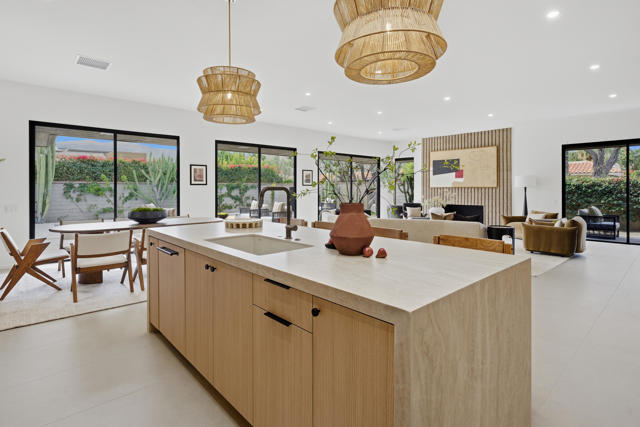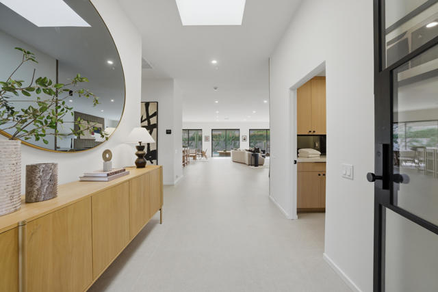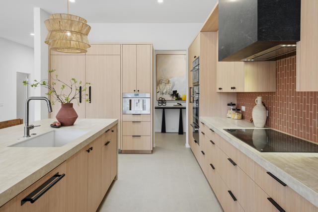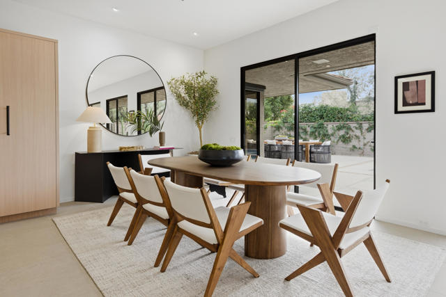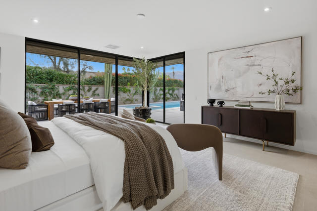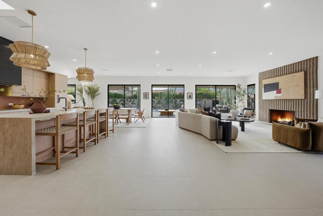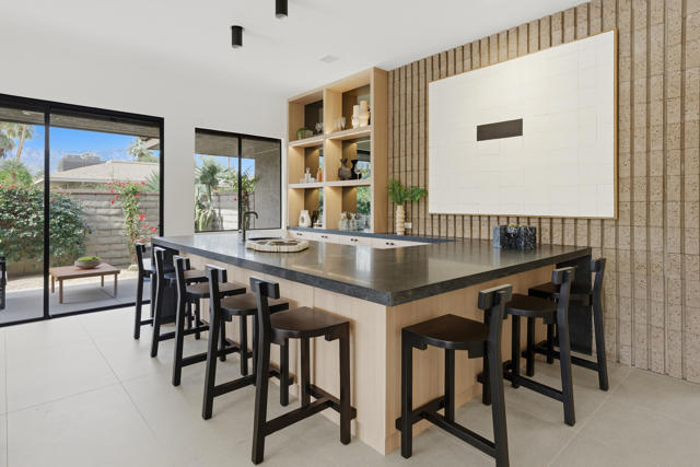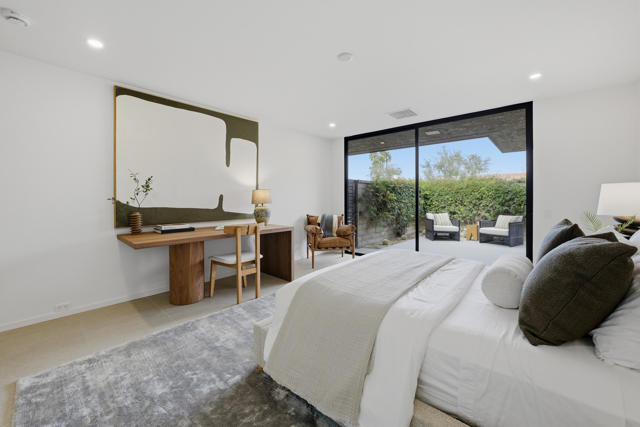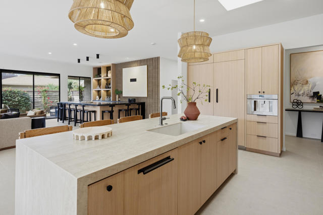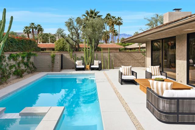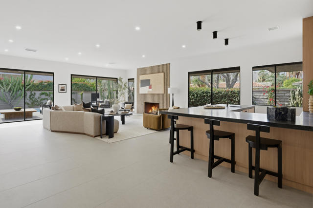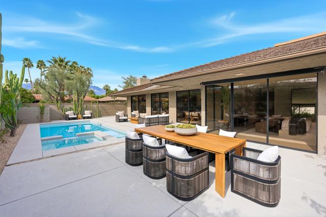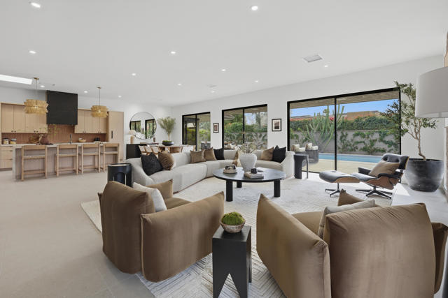 Welcome to a truly exceptional residence where style, comfort, and thoughtful design come together beautifully. This stunning property offers a blend of elegance and everyday livability, with light-filled spaces and a seamless flow throughout. The open-concept living area is perfect for both relaxed daily living and entertaining, while expansive windows bathe the home in natural light. The chef's kitchen is a standout, featuring Thermador appliances, generous prep space, large island and a layout designed to gather friends and family. Entertain with ease at the stunning custom bar, complete with ice maker and beverage center--a true showpiece designed for hosting in impressive style.Extensively upgraded with new HVAC systems, ducting, and water heaters, this home also features 19 panels of OWNED SOLAR with Tesla battery and an air-conditioned garage for year-round comfort and efficiency. Interior finishes include Level 5 smooth walls, raised ceilings, and 24' x 48' porcelain tile flooring throughout, creating a sleek, modern aesthetic. Additional bedrooms are well-appointed, offering comfort and flexibility for guests, family, or home office. Enjoy the ultimate in desert living with a south-facing pool and spa designed for both relaxation and entertaining- an ideal setting for morning swims, sunset gatherings, or peaceful evenings under the stars. Whether you're drawn to indoor-outdoor living, refined details, or a contemporary atmosphere, this home delivers it all! Located in the gated community of The Springs, you can enjoy an active lifestyle of golf, tennis, pickle and bocce ball along with numerous social and club events year-round. Don't miss this rare opportunity, schedule your private showing today!