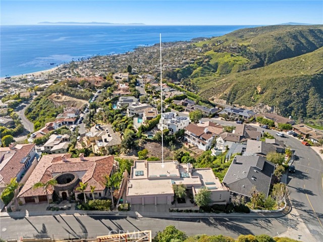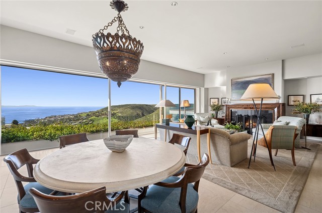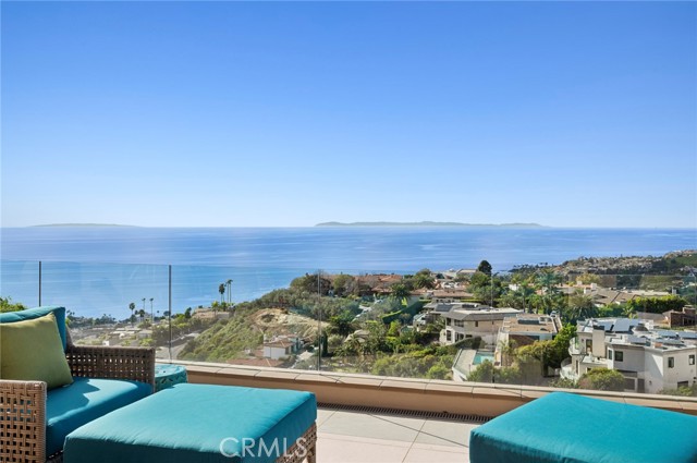 Sweeping ocean views from every room define this substantial custom residence, set on a wide-frontage 13,360-square-foot lot. Encompassing approximately 5,603 square feet, the four-bedroom, four-and-one-half-bath home is thoughtfully designed to maximize light, with dramatic coastal panoramas complemented by Catalina Island and city-light views that enhance the living spaces. Located on a cul-de-sac in the sought-after Mystic Hills neighborhood and crafted by contractor Mark Falcone with interiors by Sheldon Harte, the home presents a refined material palette anchored by limestone flooring throughout most living areas, with select accents of wood. The living room serves as a striking gathering space, highlighted by a gas fireplace with a black granite surround and Macassar ebony mantel. Pacific Ocean, canyon, and city-light views lend ambiance to dinner parties and relaxed evenings. Designed to blur the line between indoors and out, the residence features floor-to-ceiling walls of glass, while the exterior reflects timeless architectural character. Generously sized decking off a secondary grand living room with a bar area extends the living spaces and features an outdoor kitchen and vistas that encompass colorful sunsets and ever-changing skies. The primary suite near the main level boasts ocean-view deck access, a fireplace, generous walk-in closets, and a spa-worthy bath with a steam shower, creating an elegant, retreat-like ambiance. The kitchen is anchored by a large island and equipped with a 5 Star gas range, Thermador double ovens, two Bosch dishwashers, and a Sub-Zero refrigerator. Breathtaking ocean and whitewater views extend to the dining area, creating an inspiring setting for morning coffee. Low-maintenance, water-wise landscaping surrounds the residence, complementing the limestone decks and outdoor living areas. A three-car garage completes the property, offering ample parking and storage. With expansive views, generous proportions, and a thoughtful blend of timeless materials and modern comforts, this residence offers a refined coastal living experience in Laguna Beach. This one-of-a-kind home delivers an exceptional lifestyle with close proximity to beaches, restaurants, and shopping. Montage Resort and The Ranch at Laguna Beach are just minutes away, and Laguna’s village and Main Beach are only moments away. Imagine sharing a residence of this caliber with the people you love.