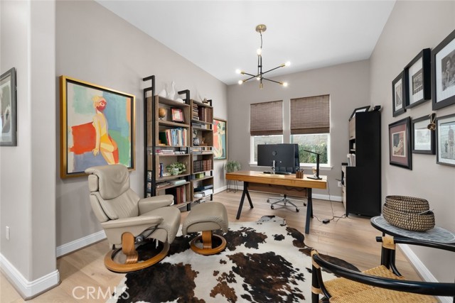 Modern Ranch meets California Coastal in this exquisitely upgraded Ventana floorplan, perfectly positioned to capture sweeping views of the vineyards, the shimmering lake and fountain, and the mountain range that frames the horizon. From sunrise to sunset, the scenery becomes a stunning natural backdrop—ever changing and always captivating. The home’s exceptional curb appeal sets an immediate impression of quality. Fresh exterior paint, stone-accented retaining walls, and a beautifully designed paver courtyard with a tranquil fountain create a welcoming entry that reflects the care and attention invested throughout the property. Inside, the chef’s kitchen features stylish white cabinetry with premium hardware, quartzite slab countertops, a generous island, a built-in refrigerator, and stainless appliances with a sleek range hood. The kitchen opens seamlessly to the great room, where a dramatic floor-to-ceiling stacked-stone fireplace adds warmth and architectural presence. Professionally designed interiors elevate every room. Automatic window treatments, plantation shutters, oak hardwood floors, and wallpaper-accented rooms create a sophisticated aesthetic. The optimized Smart-Space laundry room enhances convenience with custom cabinetry, a sink, and a built-in desk area along with a bay of cabinets in the garage for added storage. The outdoor living experience is a true highlight of this home. The covered patio functions as an additional living room, offering year-round comfort with a drop-down shade and generous space for dining or lounging. Beyond, paver pathways lead to a peaceful sitting area with built-in firepit overlooking the lake and fountain—an ideal vantage point to enjoy the reflection of the sun on the water and the dramatic silhouette of the mountains as the sky shifts throughout the day.
