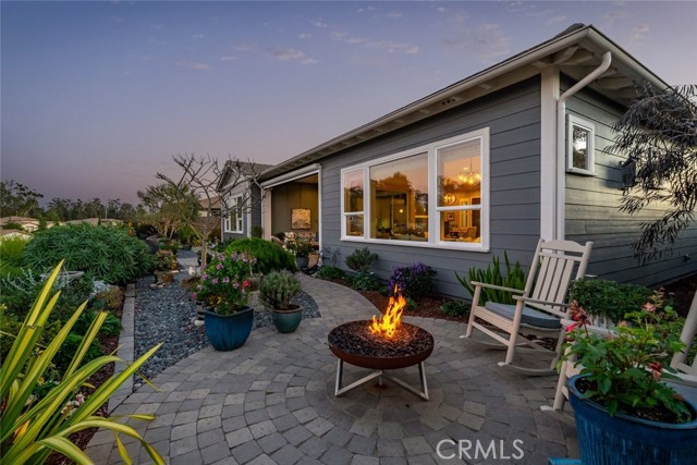 Modern Ranch meets California Coastal in this exquisitely upgraded Ventana floorplan, perfectly positioned to capture sweeping views of the vineyards, the shimmering lake and fountain, and the mountain range that frames the horizon. From sunrise to sunset, the scenery becomes a stunning natural backdrop—ever changing and always captivating. The home’s exceptional curb appeal sets an immediate impression of quality. Fresh exterior paint, stone-accented retaining walls, and a beautifully designed paver courtyard with a tranquil fountain create a welcoming entry that reflects the care and attention invested throughout the property. Inside, the chef’s kitchen features stylish white cabinetry with premium hardware, quartzite slab countertops, a generous island, a built-in refrigerator, and stainless appliances with a sleek range hood. The kitchen opens seamlessly to the great room, where a dramatic floor-to-ceiling stacked-stone fireplace adds warmth and architectural presence. Professionally designed interiors elevate every room. Automatic window treatments, plantation shutters, oak hardwood floors, and wallpaper-accented rooms create a sophisticated aesthetic. The optimized Smart-Space laundry room enhances convenience with custom cabinetry, a sink, and a built-in desk area along with a bay of cabinets in the garage for added storage. The outdoor living experience is a true highlight of this home. The covered patio functions as an additional living room, offering year-round comfort with a drop-down shade and generous space for dining or lounging. Beyond, paver pathways lead to a peaceful sitting area with built-in firepit overlooking the lake and fountain—an ideal vantage point to enjoy the reflection of the sun on the water and the dramatic silhouette of the mountains as the sky shifts throughout the day.