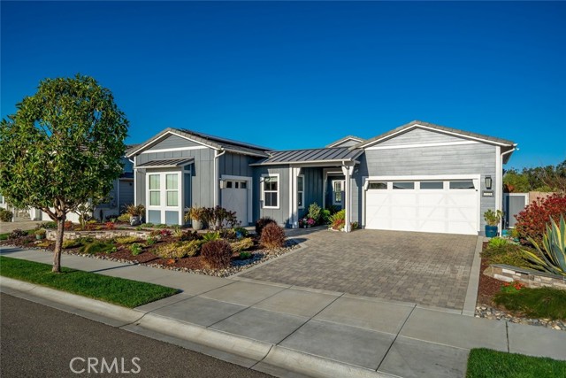 Modern Ranch meets California Coastal in this exquisitely upgraded Ventana floorplan, perfectly positioned to capture sweeping views of the vineyards, the shimmering lake and fountain, and the mountain range that frames the horizon. From sunrise to sunset, the scenery becomes a stunning natural backdrop—ever changing and always captivating. The home’s exceptional curb appeal sets an immediate impression of quality. Fresh exterior paint, stone-accented retaining walls, and a beautifully designed paver courtyard with a tranquil fountain create a welcoming entry that reflects the care and attention invested throughout the property. Inside, the chef’s kitchen features stylish white cabinetry with premium hardware, quartzite slab countertops, a generous island, a built-in refrigerator, and stainless appliances with a sleek range hood. The kitchen opens seamlessly to the great room, where a dramatic floor-to-ceiling stacked-stone fireplace adds warmth and architectural presence. Professionally designed interiors elevate every room. Automatic window treatments, plantation shutters, oak hardwood floors, and wallpaper-accented rooms create a sophisticated aesthetic. The optimized Smart-Space laundry room enhances convenience with custom cabinetry, a sink, and a built-in desk area along with a bay of cabinets in the garage for added storage. The outdoor living experience is a true highlight of this home. The covered patio functions as an additional living room, offering year-round comfort with a drop-down shade and generous space for dining or lounging. Beyond, paver pathways lead to a peaceful sitting area with built-in firepit overlooking the lake and fountain—an ideal vantage point to enjoy the reflection of the sun on the water and the dramatic silhouette of the mountains as the sky shifts throughout the day.