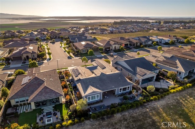 Modern Ranch meets California Coastal in this exquisitely upgraded Ventana floorplan, perfectly positioned to capture sweeping views of the vineyards, the shimmering lake and fountain, and the mountain range that frames the horizon. From sunrise to sunset, the scenery becomes a stunning natural backdrop—ever changing and always captivating. The home’s exceptional curb appeal sets an immediate impression of quality. Fresh exterior paint, stone-accented retaining walls, and a beautifully designed paver courtyard with a tranquil fountain create a welcoming entry that reflects the care and attention invested throughout the property. Inside, the chef’s kitchen features stylish white cabinetry with premium hardware, quartzite slab countertops, a generous island, a built-in refrigerator, and stainless appliances with a sleek range hood. The kitchen opens seamlessly to the great room, where a dramatic floor-to-ceiling stacked-stone fireplace adds warmth and architectural presence. Professionally designed interiors elevate every room. Automatic window treatments, plantation shutters, oak hardwood floors, and wallpaper-accented rooms create a sophisticated aesthetic. The optimized Smart-Space laundry room enhances convenience with custom cabinetry, a sink, and a built-in desk area along with a bay of cabinets in the garage for added storage. The outdoor living experience is a true highlight of this home. The covered patio functions as an additional living room, offering year-round comfort with a drop-down shade and generous space for dining or lounging. Beyond, paver pathways lead to a peaceful sitting area with built-in firepit overlooking the lake and fountain—an ideal vantage point to enjoy the reflection of the sun on the water and the dramatic silhouette of the mountains as the sky shifts throughout the day.