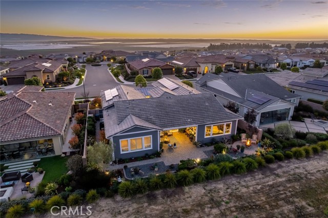 Modern Ranch meets California Coastal in this exquisitely upgraded Ventana floorplan, perfectly positioned to capture sweeping views of the vineyards, the shimmering lake and fountain, and the mountain range that frames the horizon. From sunrise to sunset, the scenery becomes a stunning natural backdrop—ever changing and always captivating. The home’s exceptional curb appeal sets an immediate impression of quality. Fresh exterior paint, stone-accented retaining walls, and a beautifully designed paver courtyard with a tranquil fountain create a welcoming entry that reflects the care and attention invested throughout the property. Inside, the chef’s kitchen features stylish white cabinetry with premium hardware, quartzite slab countertops, a generous island, a built-in refrigerator, and stainless appliances with a sleek range hood. The kitchen opens seamlessly to the great room, where a dramatic floor-to-ceiling stacked-stone fireplace adds warmth and architectural presence. Professionally designed interiors elevate every room. Automatic window treatments, plantation shutters, oak hardwood floors, and wallpaper-accented rooms create a sophisticated aesthetic. The optimized Smart-Space laundry room enhances convenience with custom cabinetry, a sink, and a built-in desk area along with a bay of cabinets in the garage for added storage. The outdoor living experience is a true highlight of this home. The covered patio functions as an additional living room, offering year-round comfort with a drop-down shade and generous space for dining or lounging. Beyond, paver pathways lead to a peaceful sitting area with built-in firepit overlooking the lake and fountain—an ideal vantage point to enjoy the reflection of the sun on the water and the dramatic silhouette of the mountains as the sky shifts throughout the day.