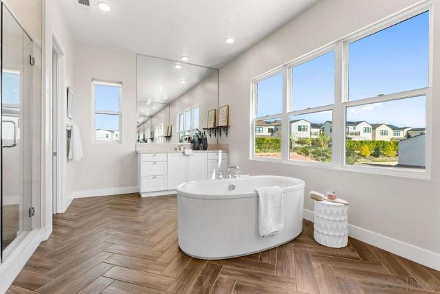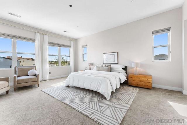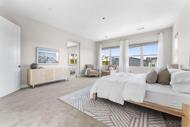 Perched on one of the most coveted lots in Pacific Highlands Ranch, this stunning two-story Irving Gill–inspired residence captures ocean views out of your front door and the essence of modern Southern California living. Built in 2019, this architecturally refined home offers 4,508 square feet of light-filled living space on an expansive 12,000+ square foot lot with an exceptional combination of scale, privacy, and premier location. The thoughtfully designed floor plan features 6 bedrooms, including 2 bedrooms downstairs, ideal for guests, multi-generational living, or a private home office. Clean lines, high ceilings, and expansive windows create a seamless indoor-outdoor flow, filling the home with natural light and coastal breezes. The open-concept living spaces are perfect for both everyday living and entertaining, anchored by a sleek, modern kitchen and generous great room. Step outside to a beautifully landscaped backyard with ample yard space, perfect for entertaining, play, or relaxing in the private jacuzzi while enjoying ocean sunsets. This oversized lot is among the best in the community, offering rare space and long-term value. Unbeatable walkable location to Pacific Highlands Ranch Village, and just minutes to Torrey Pines, CCA, Cathedral Catholic, world-class beaches, dining, and shopping. This is modern luxury, location, and lifestyle at its finest.