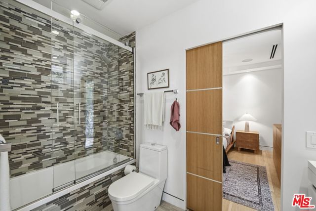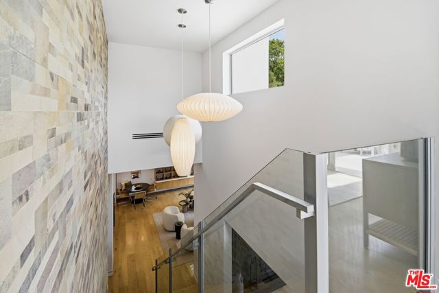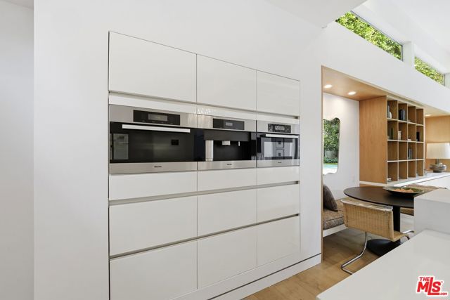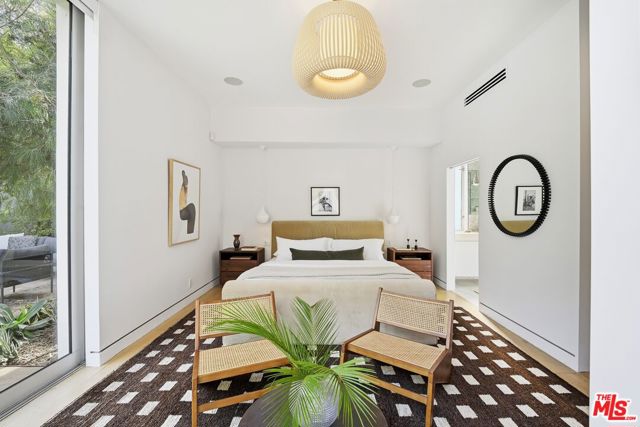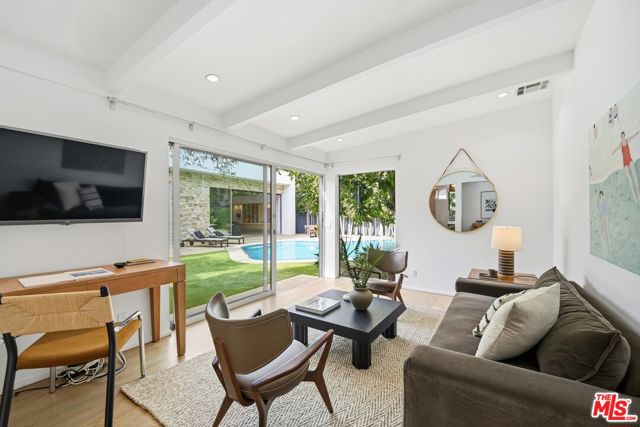 Designed by Italian-born architect Bruno Bondanelli and completed in 2013, this modern architectural residence offers a refined interpretation of Southern California indoor-outdoor living with a strong emphasis on light, privacy, and flexibility. Expansive retractable glass walls throughout the main living spaces create a seamless connection to a private backyard retreat, where a zero-edge swimming pool, generous stone and concrete patio, and manicured landscaping provide an ideal setting for both entertaining and everyday living. Inside, the sun-filled interior is grounded by hardwood floors, stone accents, and thoughtful architectural detailing. A marble-clad central fireplace anchors the living room while subtly separating it from the formal dining area. Clean lines, balanced proportions, and carefully selected materials establish a sense of calm sophistication from the moment you enter. The European-style kitchen is designed for both form and function, featuring a large central island with warm wood detailing, custom alcove shelving, and a premium suite of Miele and Thermador appliances, including an induction cooktop, multiple ovens, and a built-in espresso machine. A casual dining area with built-in bench seating completes the space, making it equally suited for intimate mornings or larger gatherings. The primary suite is privately positioned on the main level with corner retractable doors opening directly to the outdoors. Its spa-inspired bath is finished in marble and includes an expansive vanity and soaking tub, creating a serene retreat within the home. Upstairs, a flexible living area framed by large windows overlooks the neighborhood's iconic Moreton Bay fig trees. An adjacent full bath allows this space to function comfortably as an additional bedroom, office, media room, or guest suite. A detached guesthouse with a full bath offers exceptional versatility and can serve as a private workspace, creative studio, wellness room, or guest accommodations. The surrounding neighborhood is distinguished by its city-protected fig trees and is conveniently located near the Greek Theatre, Griffith Observatory, scenic hiking trails, and a vibrant mix of shops and restaurants. This thoughtfully designed home balances architectural integrity, natural light, and seamless indoor-outdoor flow in a setting that offers tranquility, accessibility, and long-term livability.