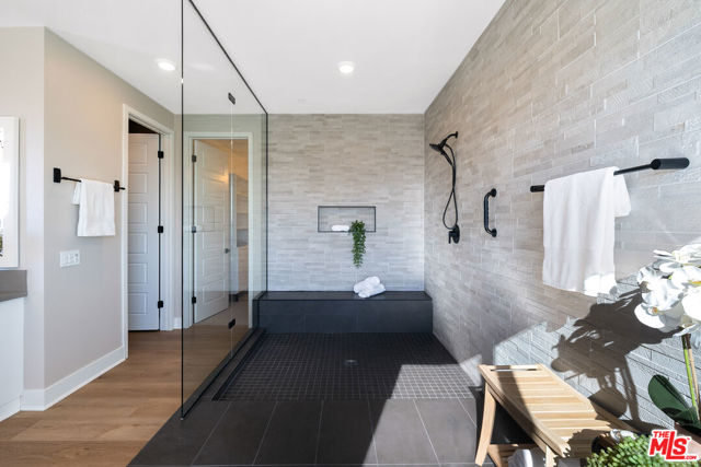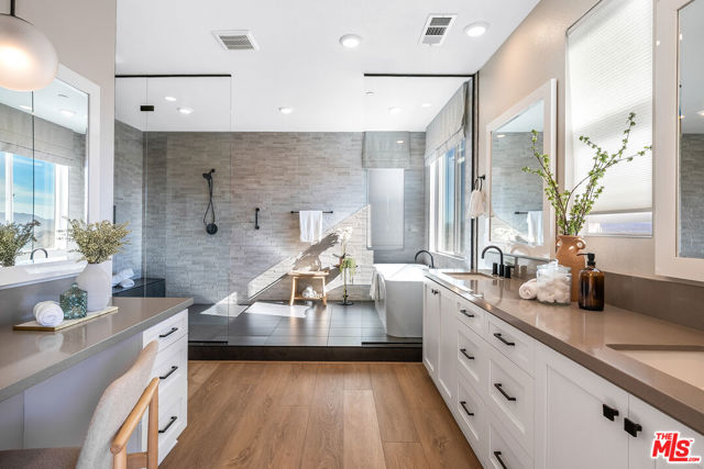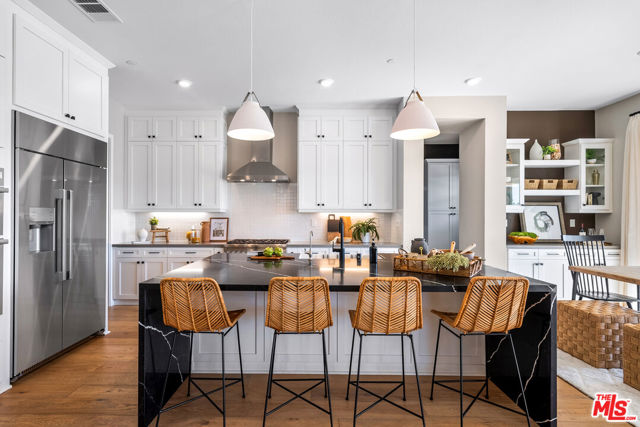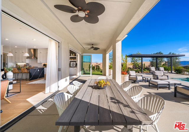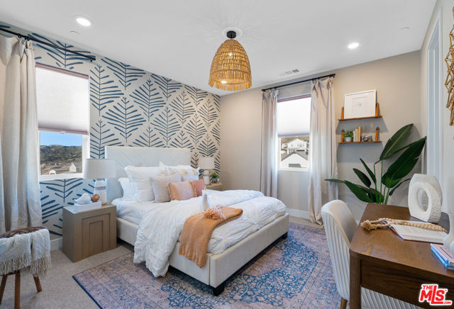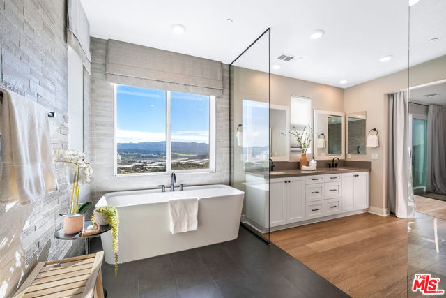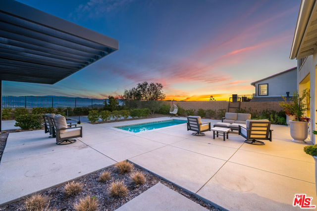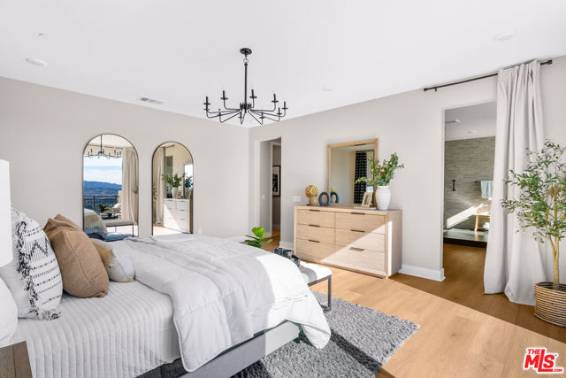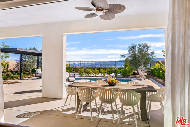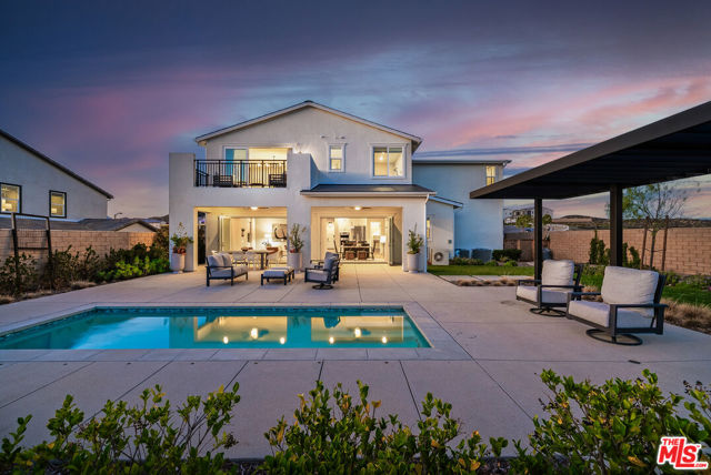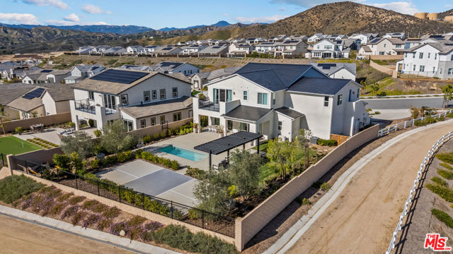 Welcome to your TURNKEY DREAM HOME, located in one of Southern California's most highly anticipated master-planned communities. This former model home boasts premium designer upgrades and contemporary elegance throughout, representing the absolute pinnacle of what the Williams Ranch community has to offer. Perfectly positioned on a corner end lot with breathtaking mountain and city views from nearly every room, this exceptional 6-bedroom, 6-bathroom home effortlessly blends modern sophistication, versatility, and relaxed, everyday livability. This stunning property is a fully energy-independent showcase, crowned by a sleek, OWNED Tesla Solar Roof tile system (1 of only 6 homes in the development) paired with Powerwall backup batteriesdelivering near-zero energy bills PLUS uninterrupted power during outages, offering the ultimate peace of mind in sustainable luxury. The open-concept living areas flow effortlessly to your very own private resort-style backyard featuring a covered California room with ceiling fans and mood lighting, sparkling pool, dedicated pickleball/sport court, and a cantilevered steel pergola providing plenty of shade. Enjoy rich hardwood flooring, tri-fold glass doors, designer lighting, and built-in closet organizers. Every bathroom is upgraded with Moen bathroom fixtures and hand-laid tiles. Retreat to the luxurious primary suite with a private balcony and an oversized walk-in closet. The spa-like ensuite bath features dual vanities, an oversized walk-in shower, soaking tub, and artisan stone detailing. At the heart of the home, the chef's kitchen dazzles with a dramatic waterfall-edge island, premium stainless steel appliances, soft-close shaker cabinetry, a spacious walk-in pantry, and custom coffee bar. RARE fully appointed ADU with private entrance, complete kitchen, in-unit laundry, walk-in closet, bedroom + bathroom -- perfect for extended family, guests, or rental income. You'll also love the 4-car epoxy-finished garage with an extended driveway providing abundant parking for all of your vehicles and toys. Additional everyday luxuries include a drop-zone mudroom, built-in-wall pest defense system, and full smart-home integration compatible with Alexa. Don't miss this rare opportunity to own a move-in ready, resort-inspired home that blends cutting-edge design with timeless luxury, giving you effortless everyday living!