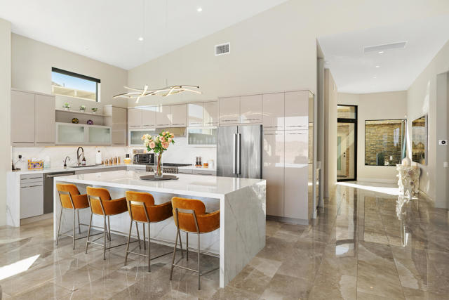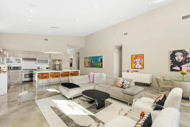 Experience true desert living in this exquisitely renovated condo with elevated mountain views and the serene setting of Ironwood Country Club. This residence offers three spacious bedrooms, three full bathrooms, and a separate powder room, creating an ideal balance of comfort. The heart of the home features a stunning chef's kitchen appointed with Bertazzoni Italian appliances, sleek cabinetry, and refined finishes perfect for entertaining or everyday living. Soaring raised ceilings throughout enhance the sense of openness and natural light, while thoughtful layout design ensures excellent separation of bedrooms, offering privacy for guests. Additional highlights include seamless indoor-outdoor living that fully embraces the surrounding landscape. This home delivers luxury, tranquility, and timeless design in one of South Palm Desert's most sought after communities.