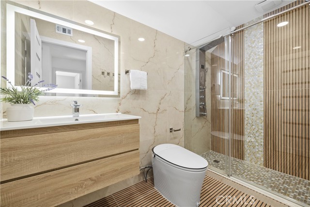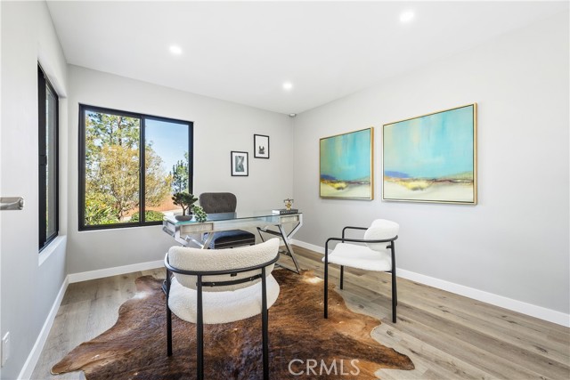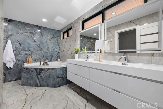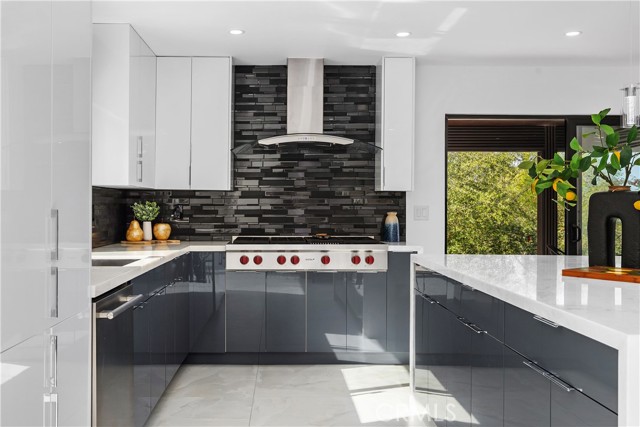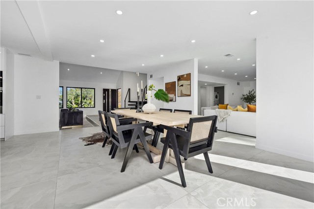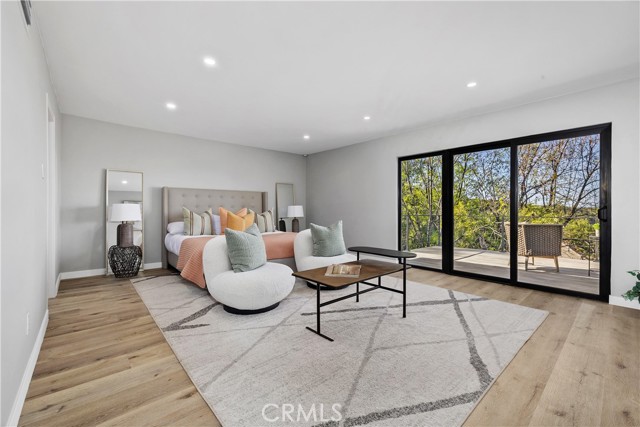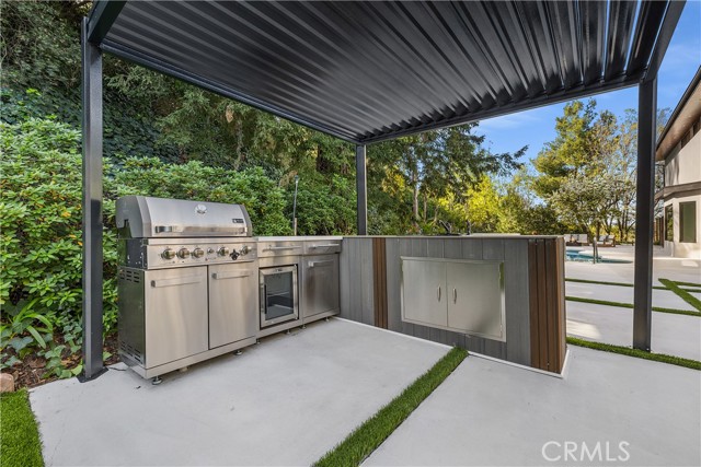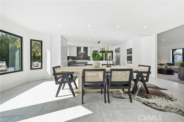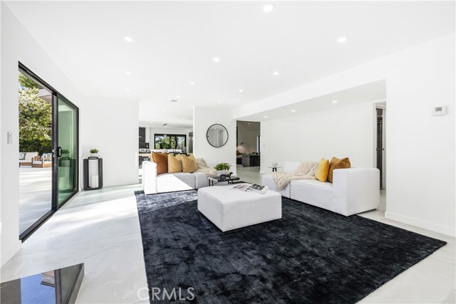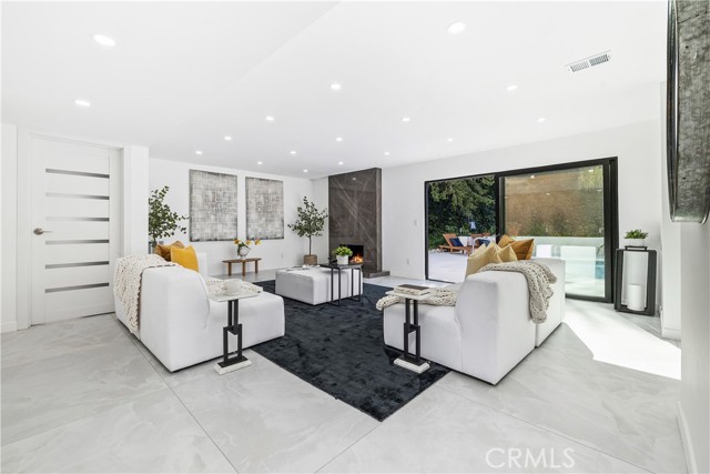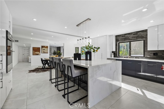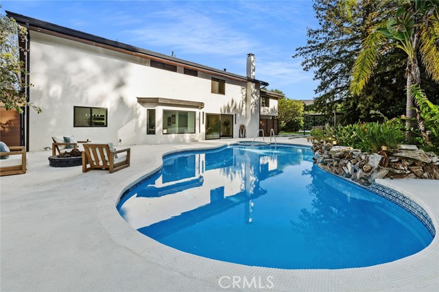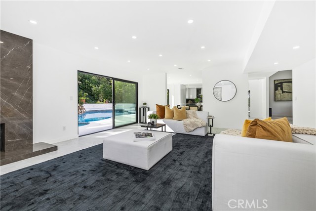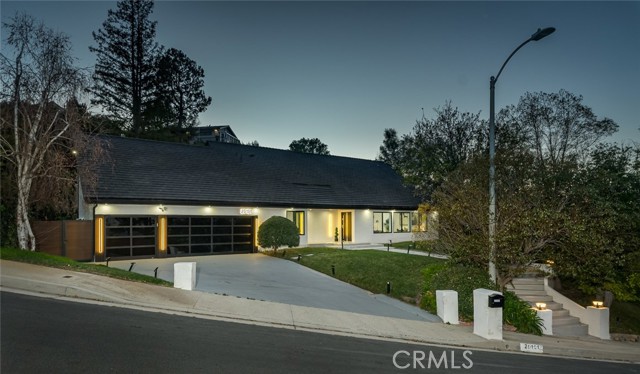 Perched in the hills of Tarzana, this fully reimagined architectural residence on Greenbriar Drive provided elevated living with breathtaking valley and mountain views. Set on an expansive 21,000+ square foot lot, the home features nearly 3,500 square feet of refined interiors designed for both grand entertaining and effortless everyday living. The interior includes volume ceilings, large windows, and open living areas filled with natural light. Finishes include tile flooring, statement lighting, and a custom floating staircase. The living and dining areas are designed to capture the surrounding views and provide a seamless connection to the outdoors. The kitchen features custom cabinetry, premium appliances, an oversized island, and a modern fireplace in the adjacent lounge area. Sliding glass doors open to the backyard, creating a connection between indoor and outdoor spaces. The backyard includes a pool, patio areas, and landscaped grounds. The primary bedroom features an en-suite bathroom with contemporary finishes. Additional bedrooms and bathrooms provide flexibility for various needs. The property includes a three-car garage and is located with convenient access to Ventura Boulevard, dining, shopping, and local amenities.
