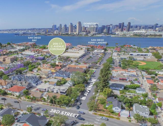We are excited to offer a wonderful five (5) unit multifamily property at 209-17 C Avenue in Coronado for sale. Just two blocks from the Ferry Landing, this property has been well-maintained by current ownership (30+ year hold time), with two units having undergone major renovations, and the others ripe for modernization. There are three (3) 2BR/1BA units downstairs, each with a generous private enclosed patio. There are two (2) spacious 2BR/2BA units located upstairs in the back (near the alley), with a large private balconies and views to downtown San Diego. In addition to a common laundry room, a nicely manicured lawn in front and tasteful perimeter landscaping, there are five (5) surface off-street parking spaces, three of which are covered, and one of which may be used as a tandem (2-vehicle) space.