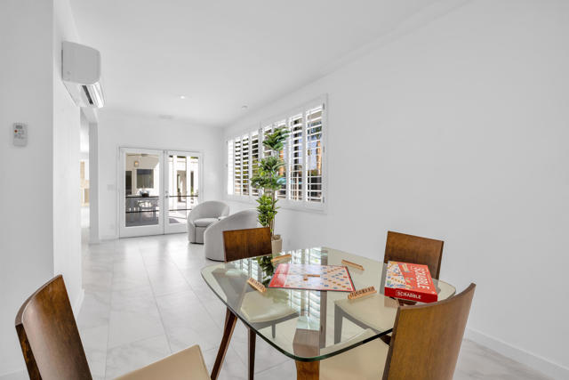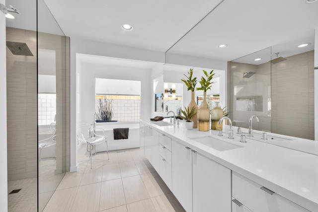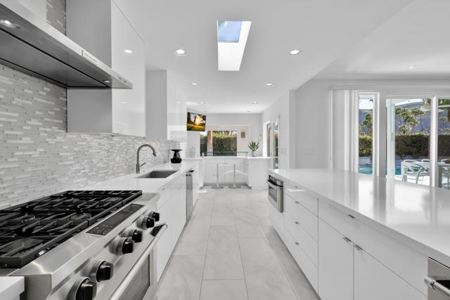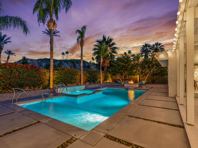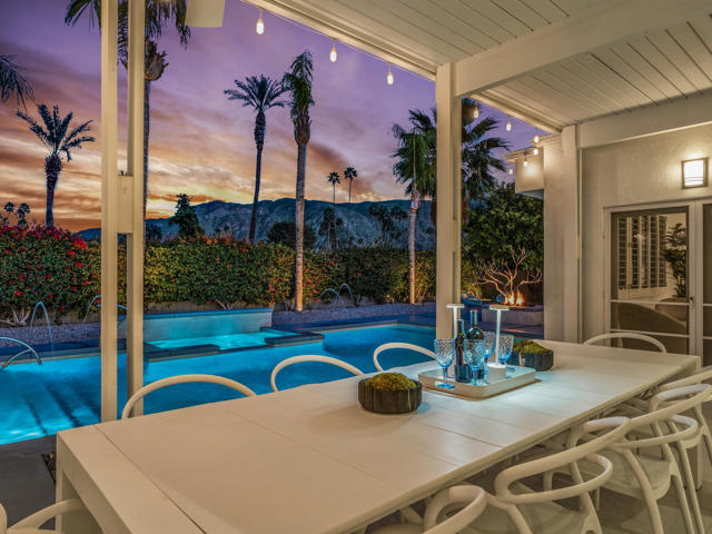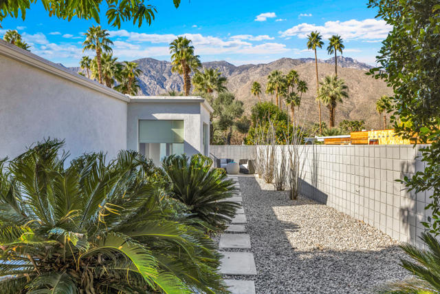 This distinguished mid-century residence is set on one of the largest parcels along Alhambra Drive in the Indian Canyons enclave of Palm Springs. Designed by Boris Gertzen, the home reflects classic desert modernism, highlighted by his signature marble faced fireplace, strong horizontal lines, and expansive walls of glass that connect interior spaces to the outdoors.The floor plan is open and intentional, allowing natural light throughout while thoughtfully separating bedrooms, each with mountain views. The primary suite opens directly to the covered patio and pool, while additional bedrooms enjoy individual access to exterior spaces. The central kitchen is modern and efficient, featuring KitchenAid(r) appliances, a large built-in refrigerator, and a separate built-in ice maker designed to support both daily living and entertaining. Living and dining areas are generous and fluid, complemented by a game room and a family room with a substantial wet bar. Storage is abundant, including multiple interior closets, an oversized walk-in closet in the primary suite, exterior storage for pool essentials, and additional closets in the spacious garage.The landscaped grounds are framed by views of Mount San Jacinto and include a Zanzibar white mini pebble pool and spa completed in 2020 with Pentair equipment, water features, and cascading spa. Additional amenities include a built-in firepit, lighted bocce court, multicolored bougainvillea hedge, white plumeria, multiple citrus trees, and a mature fruiting mango tree.Located on the 17th hole of the historic Indian Canyons North Golf Course, the property offers seclusion, open views, and a setting within one of the least windy areas of town. The Indian Canyons neighborhood is known for premier mountain views, a strong sense of community, underground utilities, and access to hiking trails, all just minutes from shopping and dining.
