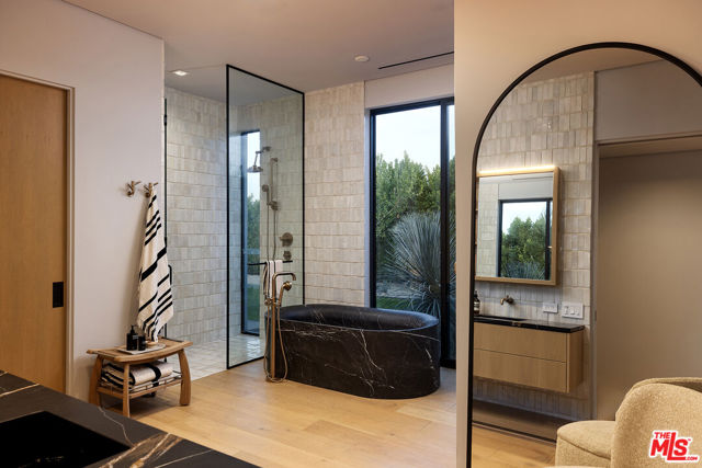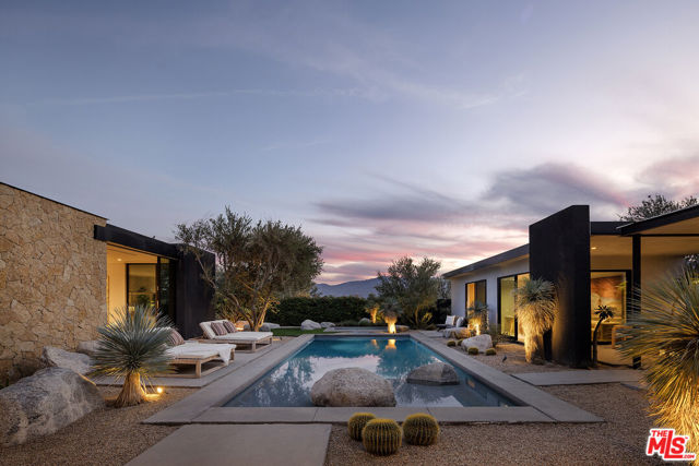 Sean Lockyer and Studio AR&D have designed and helped to create one of the most authentic architectural projects completed in recent years. Echo's bold modern architecture seamlessly integrates with its rugged yet majestic desert surroundings in Rancho Mirage. Flooring flows effortlessly from interior to exterior, extending out into the landscape to create a striking interaction between home and nature. Native flora edges right up to the living areas, further uniting the two realms. Mountainous panoramas are framed by expansive walls of glass in the spacious great room and master bedroom, engaging both distant vistas and immediate views. In a clean, crisp design technique, walls continue from indoor spaces to the outdoors in one long, beautiful sight line. This is floor plan 2, featuring a detached casita for added flexibility and privacy. Additionally, an outdoor kitchen has been thoughtfully added by the architect, enhancing the seamless indoor-outdoor lifestyle with a fully equipped space for al fresco dining and entertaining amid the desert backdrop. The home spans approximately 4,155 square feet with 4 bedrooms and 4.5 baths, complete with a private pool, south-facing orientation for optimal light and views.