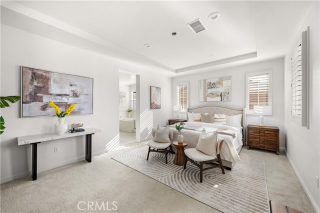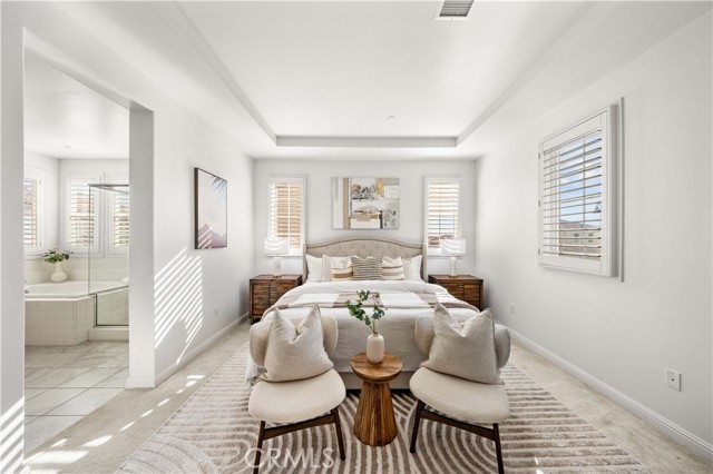 Situated on a corner lot, this home offers a peaceful garden and additional parking convenience. The home features an open floor plan with high ceilings. Upgraded sliding door systems create a seamless indoor-outdoor flow to the California room, overlooking a garden beautifully accented with desert landscaping and cactus plants, creating a calm and peaceful retreat. The home offers a convenient first-floor bedroom, with four additional bedrooms upstairs, providing a functional and well-designed layout. Additional highlights include a solar system and an electric vehicle charger. Residents enjoy access to resort-style amenities, including a clubhouse with a pool, spas, BBQ grills, and breathtaking mountain and city views. Conveniently located with easy access to the 118 freeway, and just minutes from The Vineyards at Porter Ranch, offering shopping, groceries, movie theaters, and fine dining. Walking distance to the highly rated Porter Ranch Community School (K–8) and only a short drive to Sierra Canyon School. Experience the comfort, convenience, and lifestyle this home has to offer.