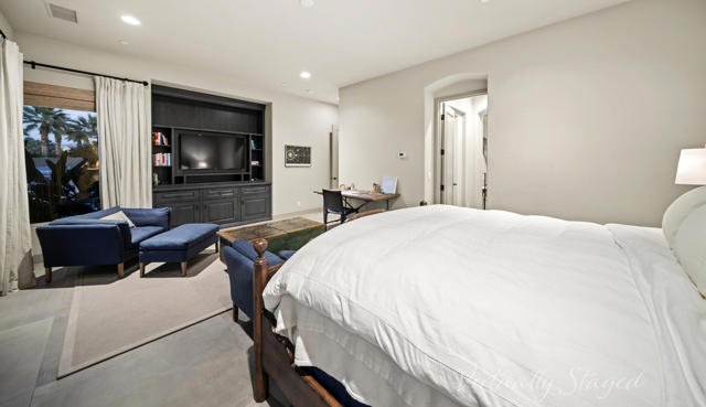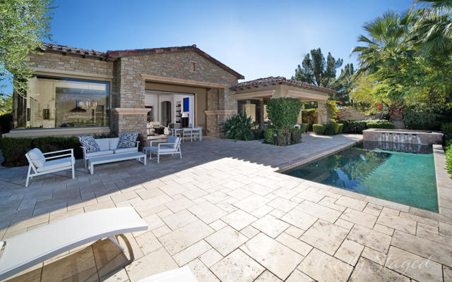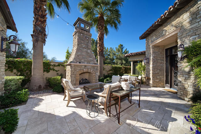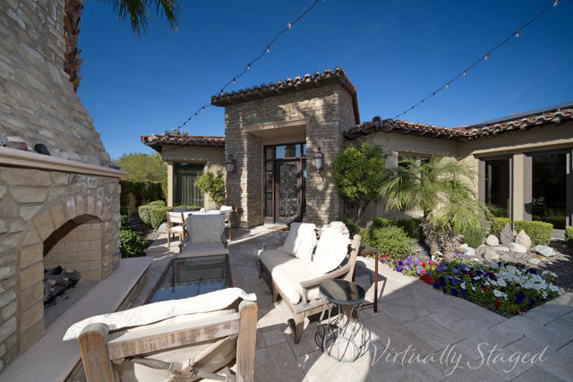 Experience timeless Tuscan elegance in this exceptional residence ideally positioned on the 9th hole of Toscana Country Club's North Course. Set on a premium west-facing lot with no homes across the fairway, this property captures sweeping, unobstructed mountain views and spectacular desert sunsets, while offering close proximity to the Club's world-class amenities.Tuscan-inspired architecture paired with thoughtfully updated interiors creates a warm yet elevated desert retreat. The well-designed floorplan flows effortlessly for both everyday living and entertaining, with expansive living spaces that open to the outdoors and frame the golf course and mountain backdrop.The custom-designed gourmet kitchen is truly one of a kind, featuring distinctive finishes, Wolf and Sub-Zero appliances, and a layout tailored for both function and style. The private primary suite offers a peaceful escape, complemented by well-appointed guest accommodations that provide comfort and privacy.Outdoor living is elevated with expansive patios ideal for dining, relaxing, and enjoying panoramic views. Owned solar enhances efficiency, while the exceptional lot and prime location deliver the quintessential Toscana lifestyle.