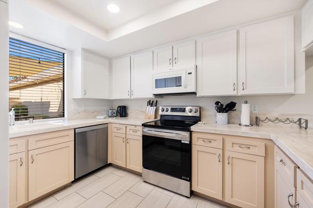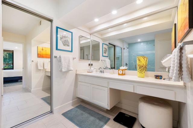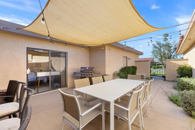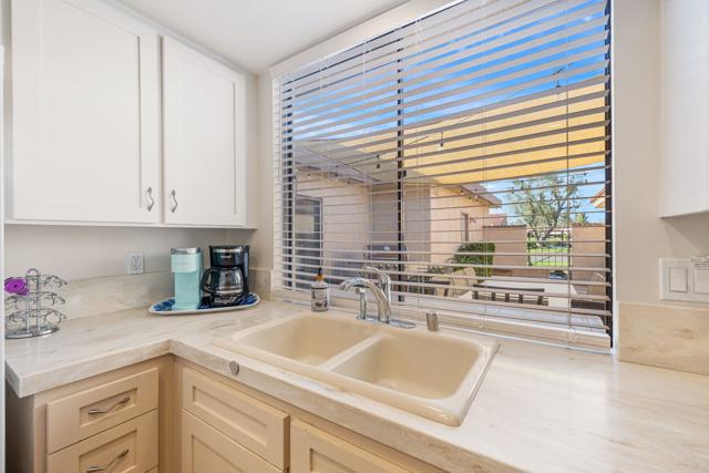 SOUTH-facing and beautifully updated, this popular granada plan two-bedroom, two-bath condo is ideally positioned overlooking the lush green second fairway with sweeping VIEWS of the Santa Rosa mountains. Located within the highly desirable Sunrise Country Club, this spacious open-concept home offers privacy, comfort, and resort-style living.A private courtyard entry welcomes you with fresh paint and new furnishings, creating a warm and inviting first impression. Inside, the home has been thoughtfully upgraded with NEW flooring throughout, smooth ceilings following popcorn removal, and fresh interior PAINT for a clean, modern feel.The primary suite is a relaxing retreat featuring a stunning custom RENOVATED walk-in shower with elegant tile work and a built-in bench, along with a large private bath and walk-in closet. Both the living room and primary bedroom include sliding glass doors that open to the rear patio, perfect for entertaining or enjoying peaceful desert sunsets and golf course views.The kitchen has been updated with newer cabinetry and countertops and enhanced with new lighting, freshly painted ceilings and walls, and a new dishwasher. Additional improvements include a new AIR CONDITIONING UNIT, NEW washer and dryer, and freshly painted patio.The attached garage offers custom storage cabinetry and convenient laundry hookups. Ideally located near two community pools and a spa, this home is also just a short distance from the clubhouse.Sunrise country club is a 24-hour guard-gated community offering an 18-hole golf course, driving range, putting green, tennis and pickleball courts, bocce ball, 21 swimming pools, 19 spas, a fitness center, and multiple dining venues with beautiful fairway views. Centrally located in rancho mirage near the river complex, residents enjoy easy access to fine dining, shopping, and theaters.Come experience relaxed desert living at its best.